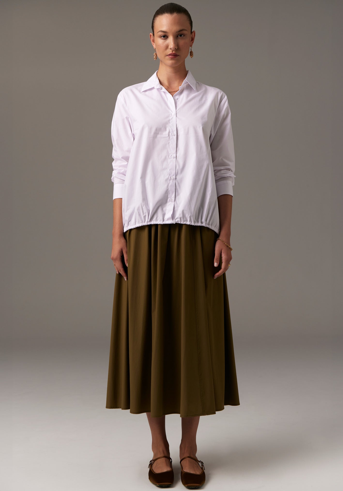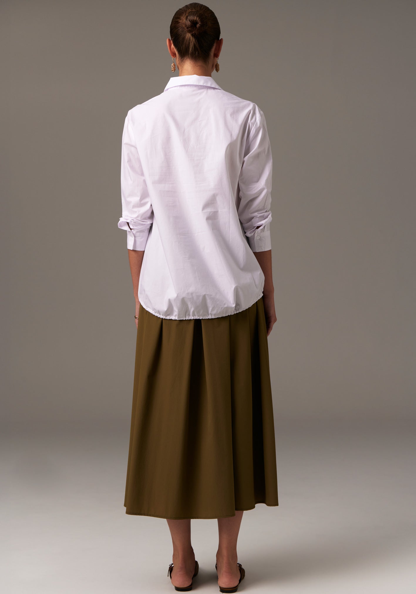 The Louie Drawcord Shirt is a completely new silhouette for us, featuring a relaxed fit that can be gathered in at the hem with the drawcord.