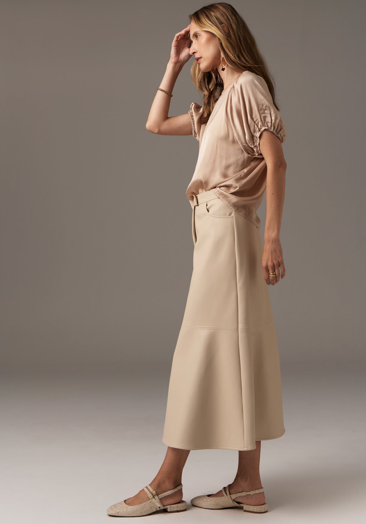 -Styled with the Gumball Silk Shirt and the Liora Knit.