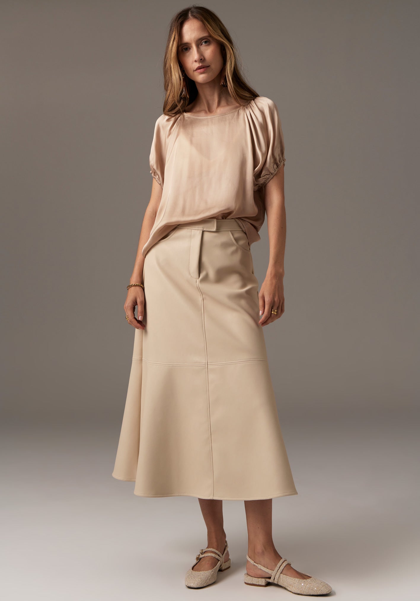 -Body skimming over the hips and thighs.