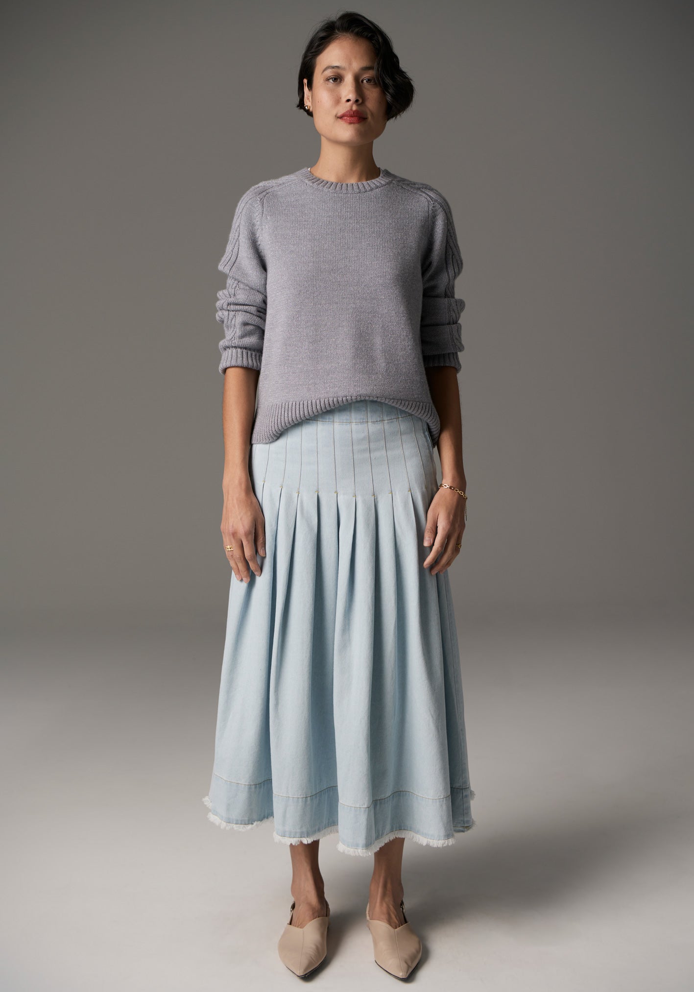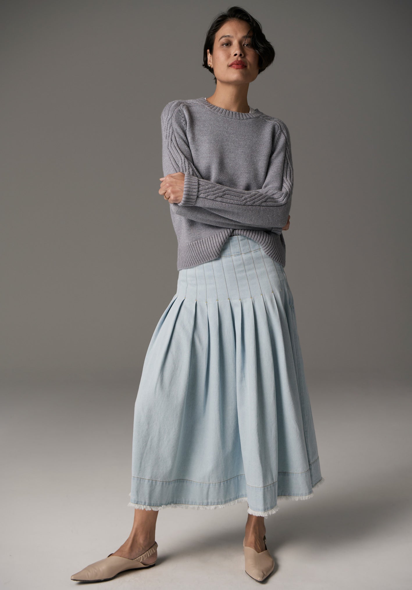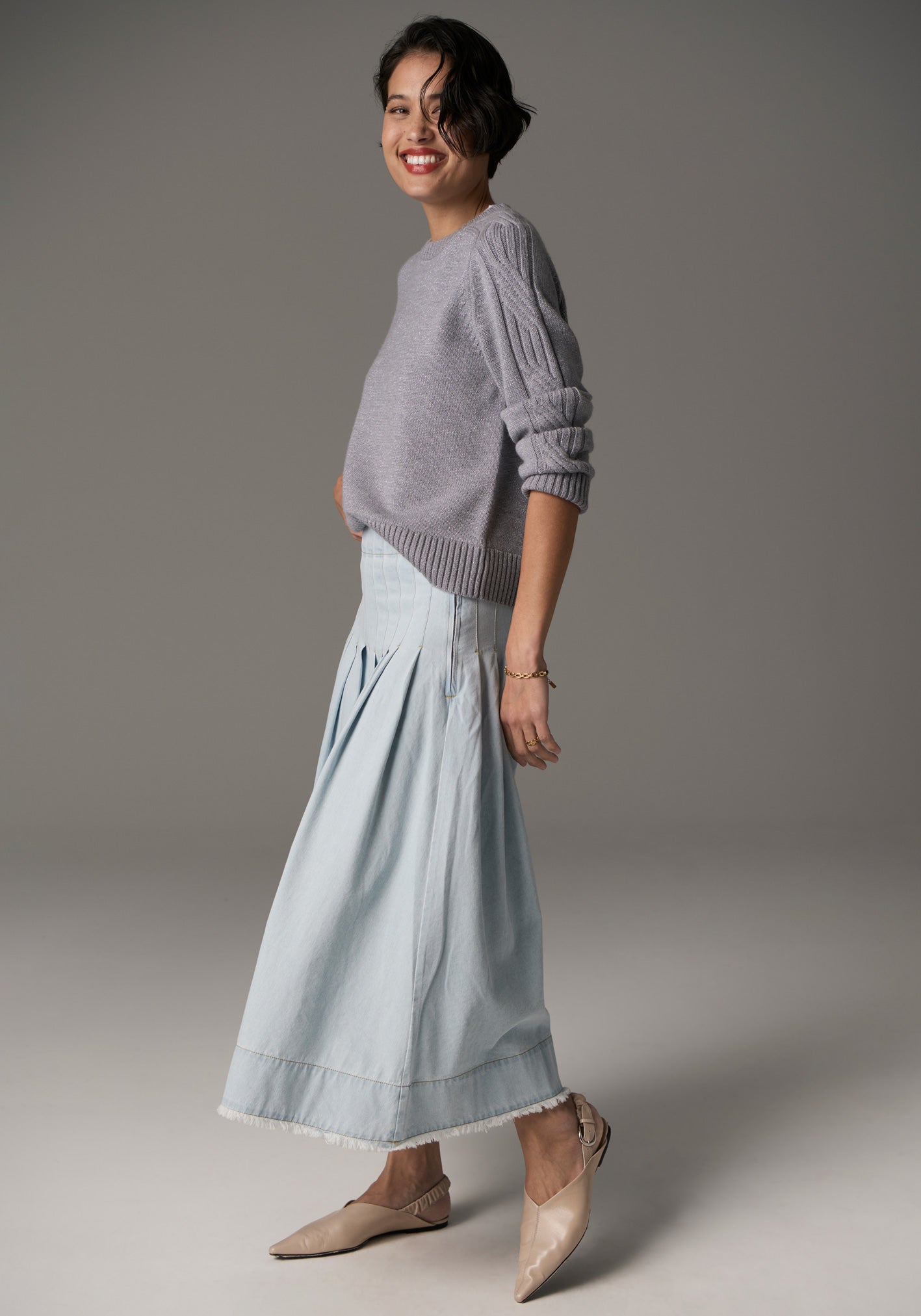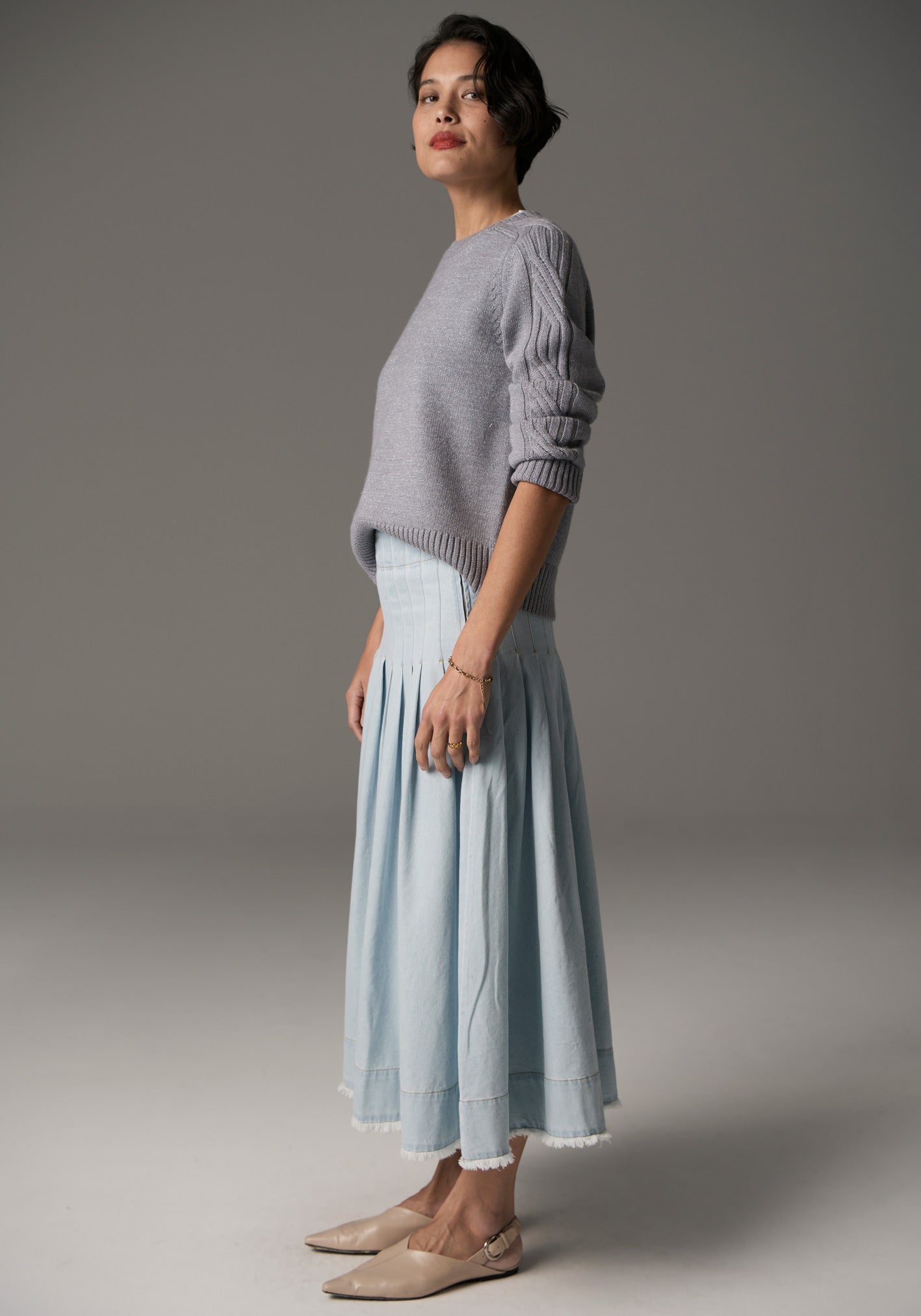 The Bennet Lurex Cable Knit is a luxurious take on a wardrobe essential, featuring a classic silhouette with a hint of shine.