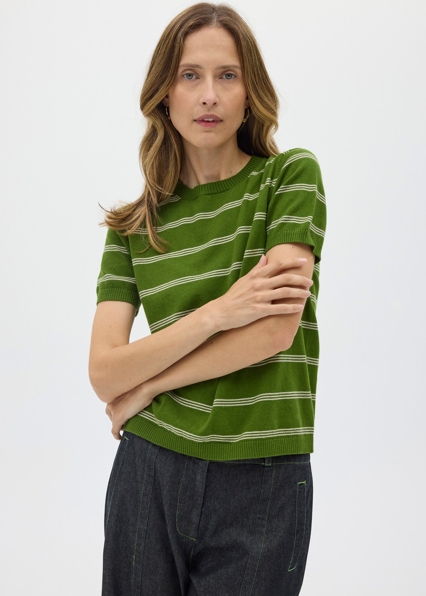 Looking for the perfect transseasonal piece? The Beech Stripe Knit Tee takes our favourite cotton cashmere tee silhouette and adds new triple stripe detailing, in colours designed to mix and match back perfectly with our new Raydel Contrast Denim Pants and the Miley Linen Stripe Pant.