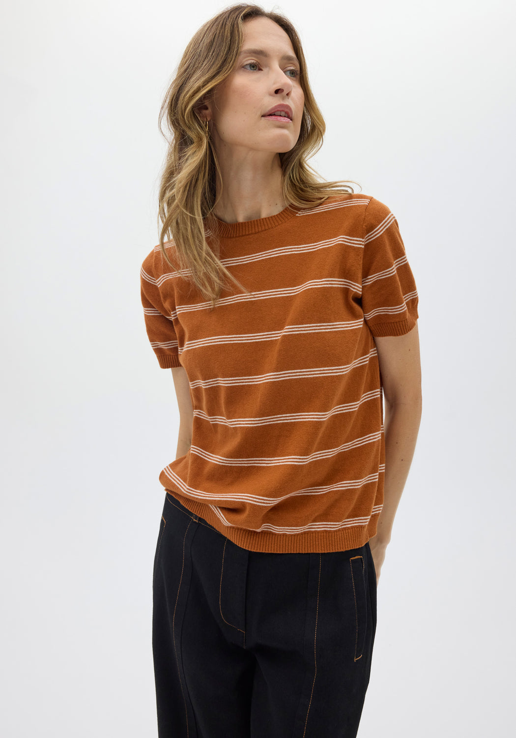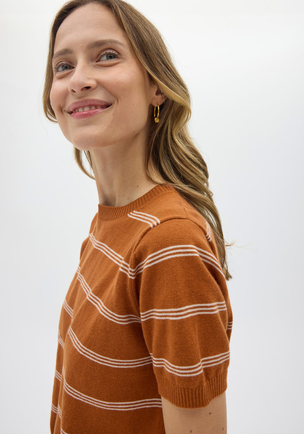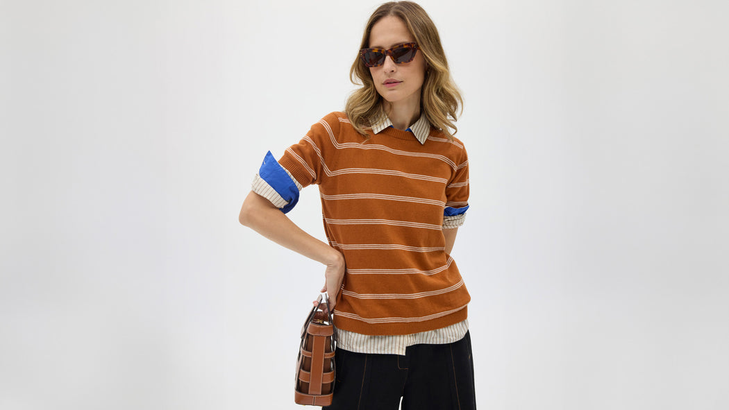 Looking for the perfect transseasonal piece? The Beech Stripe Knit Tee takes our favourite cotton cashmere tee silhouette and adds new triple stripe detailing, in colours designed to mix and match back perfectly with our new Raydel Contrast Denim Pants and the Miley Linen Stripe Pant.