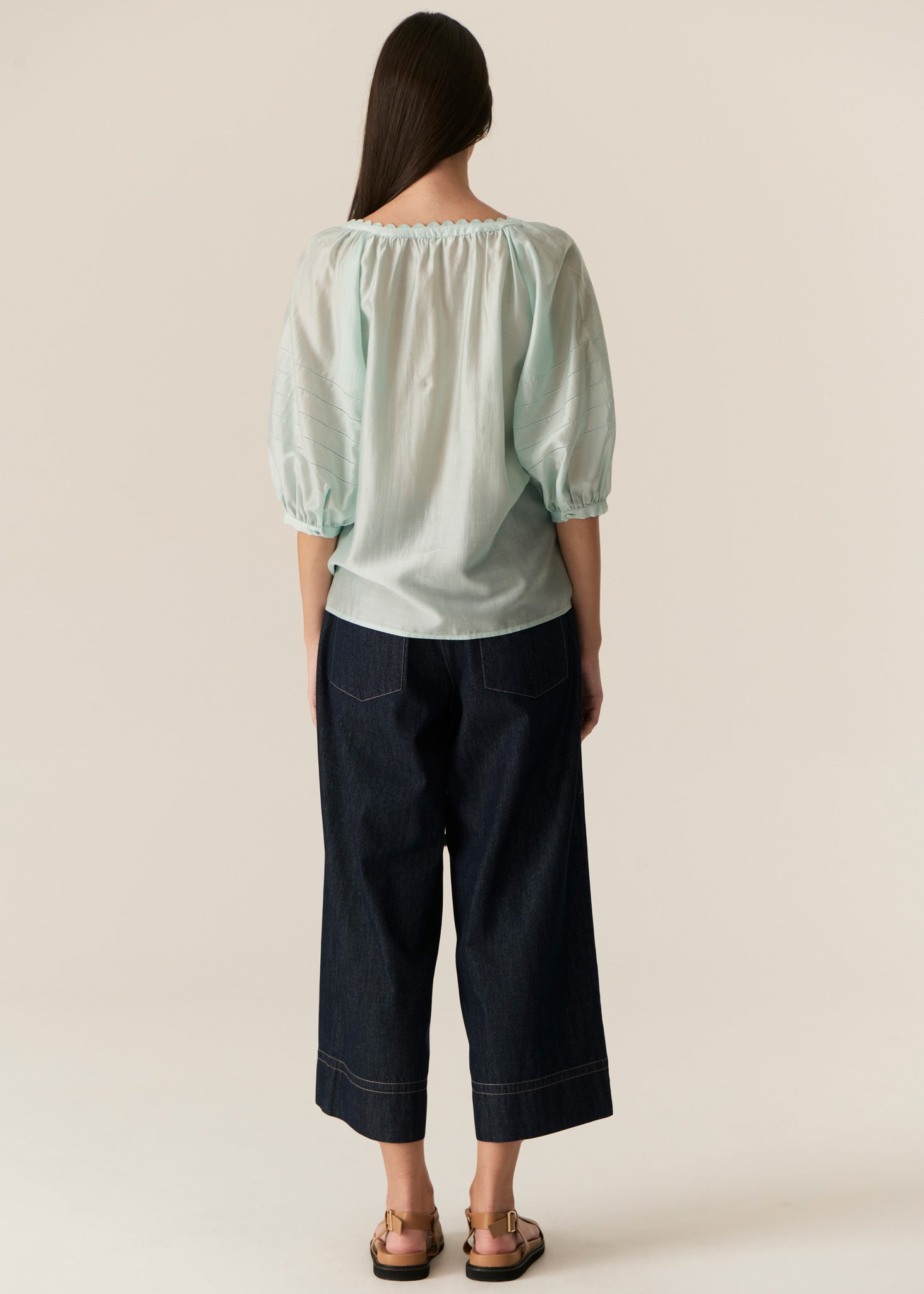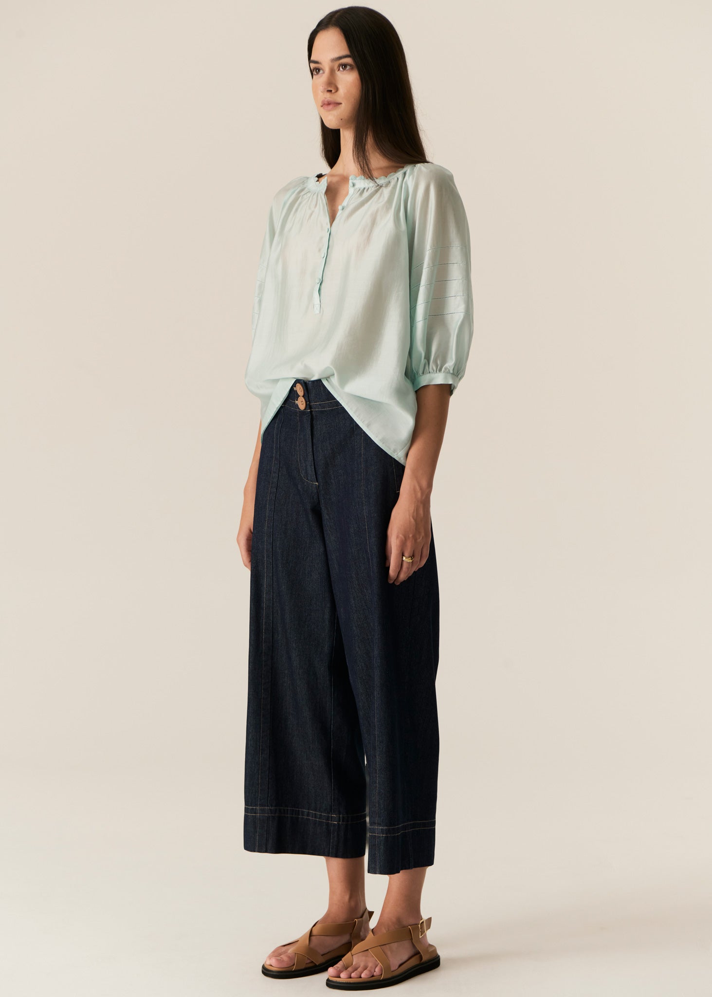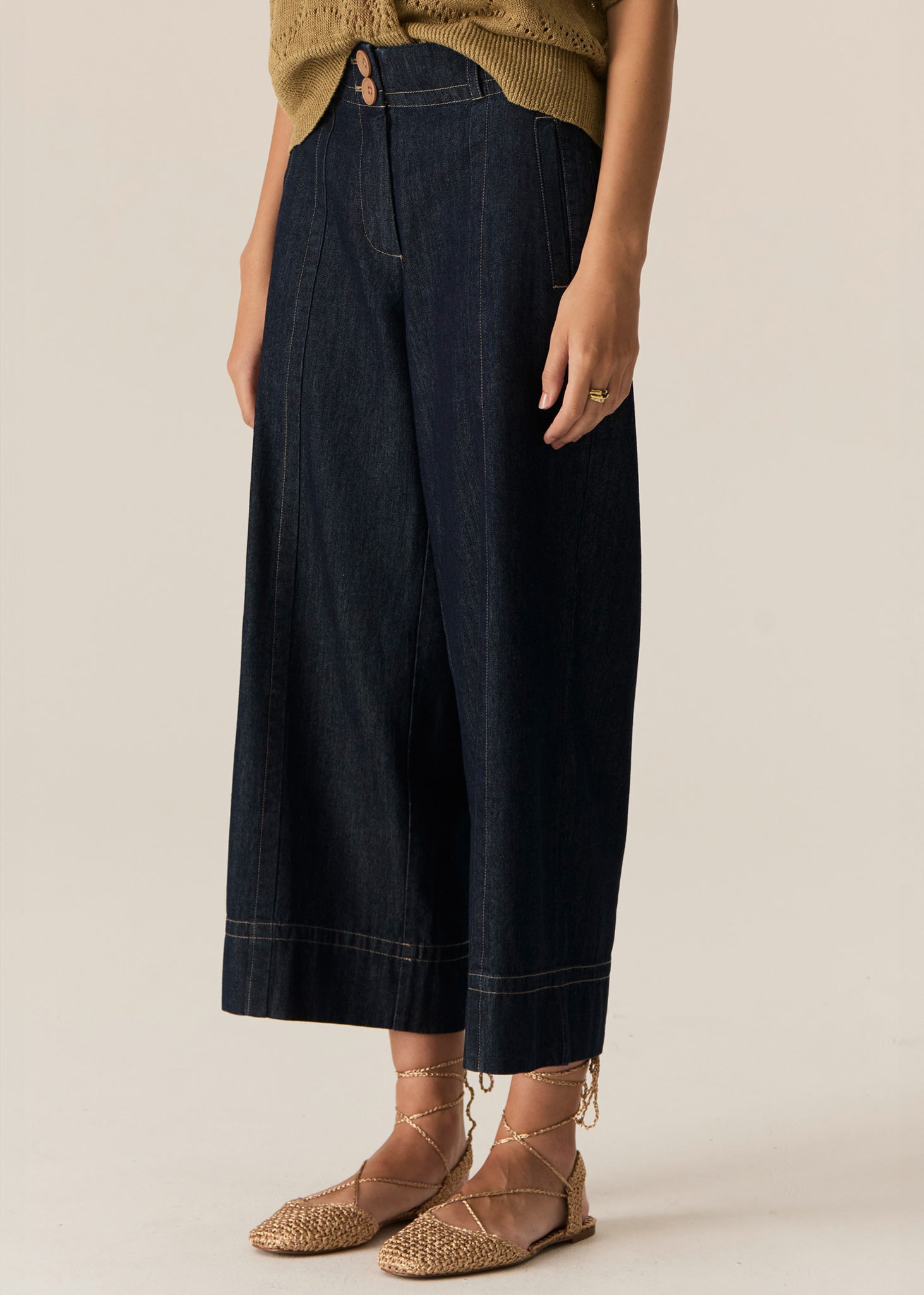 Our bestselling Raydel silhouette is back with a new name and updated colours! Featuring an elasticised waist, wide, cropped leg and made from 100% cotton, the Carsen Crop Denim Pant style is the perfect mix of comfortable and polished.