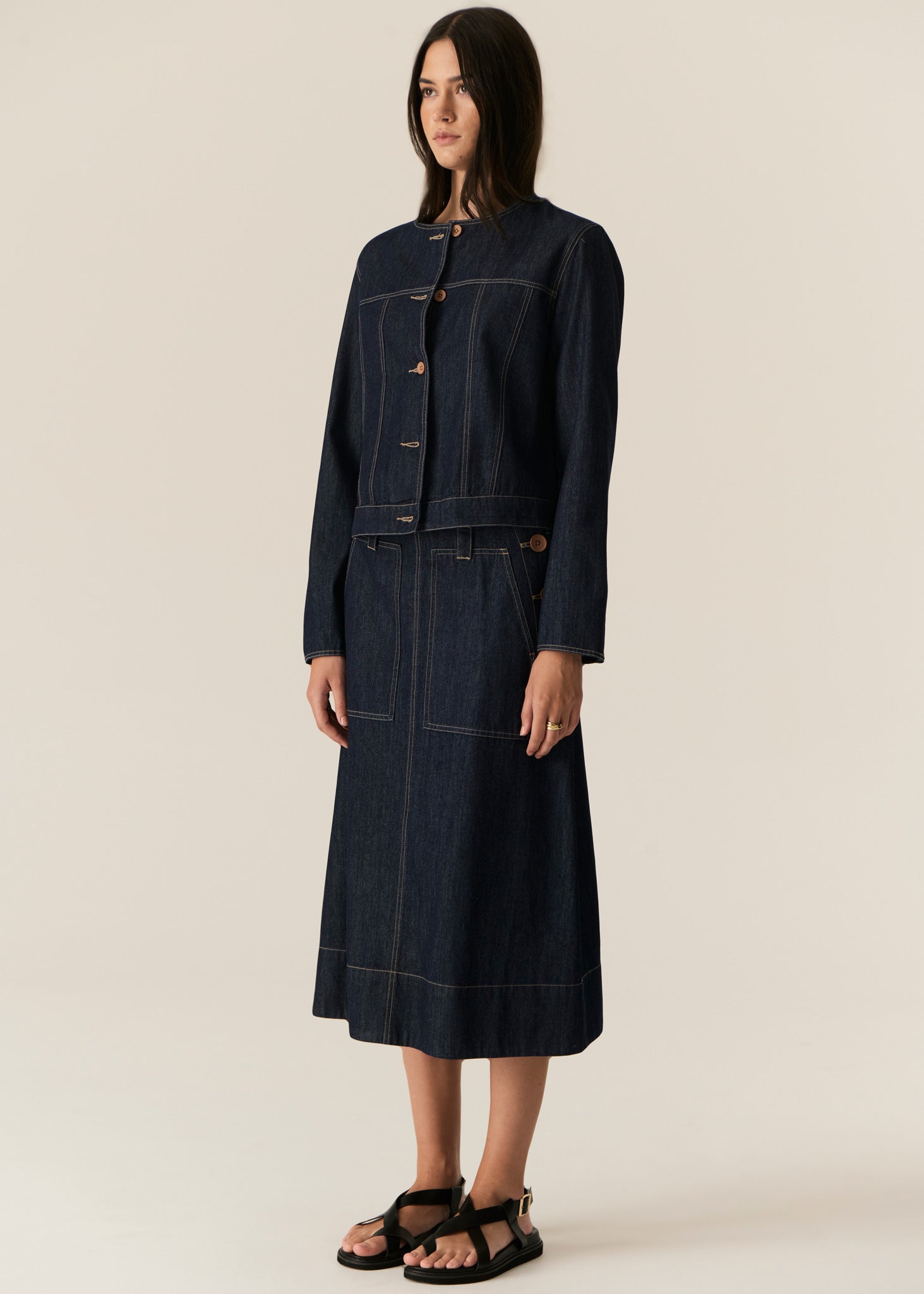 -Contrast button closure - matches the Carsen Denim skirt and Carsen Pants.