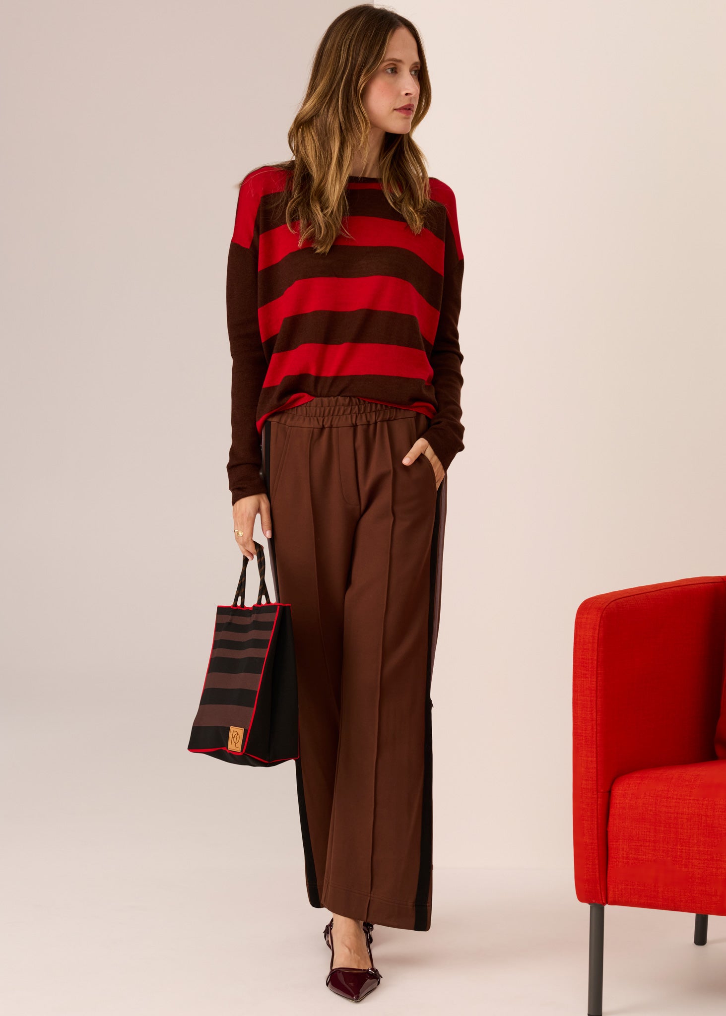 Our Cassidy Track Pants are the perfect elevated casual piece. Crafted from a polished ponte fabrication with a double stripe detail, they feature an invisible zip in the side seam from the hem to the knee—allowing you to adjust the silhouette from a straight leg to a flared leg.