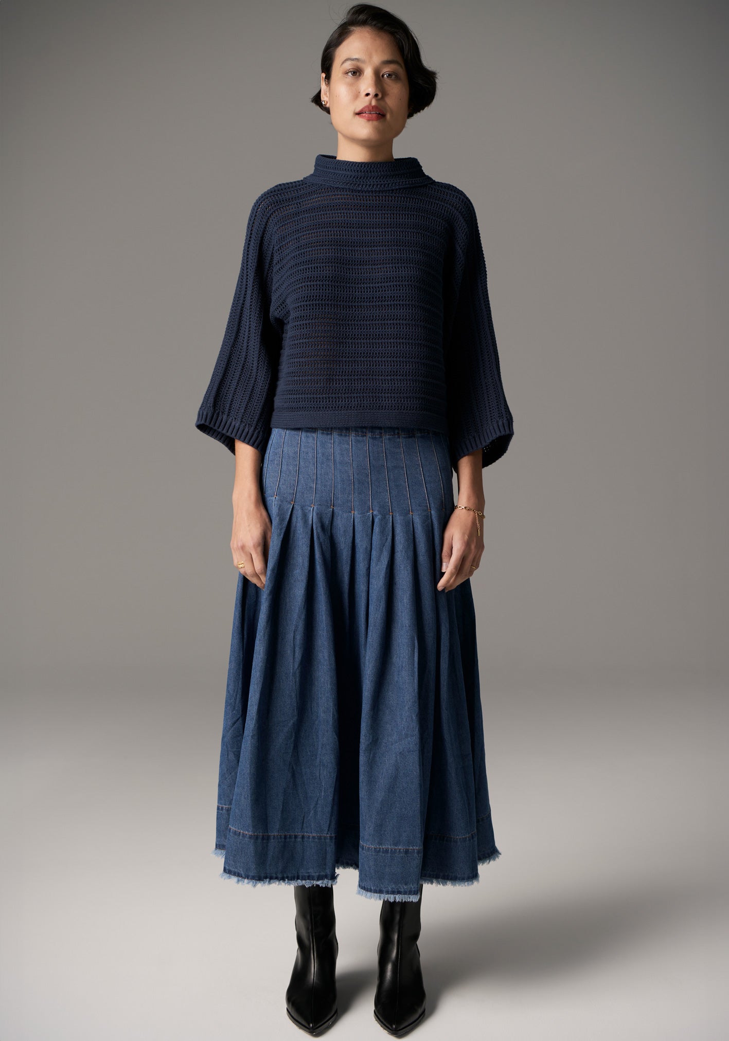 -Style with the Lauren Wide Leg Jean, Harper Straight Crop Jean or the Reece Denim Skirt for an elevated casual look.