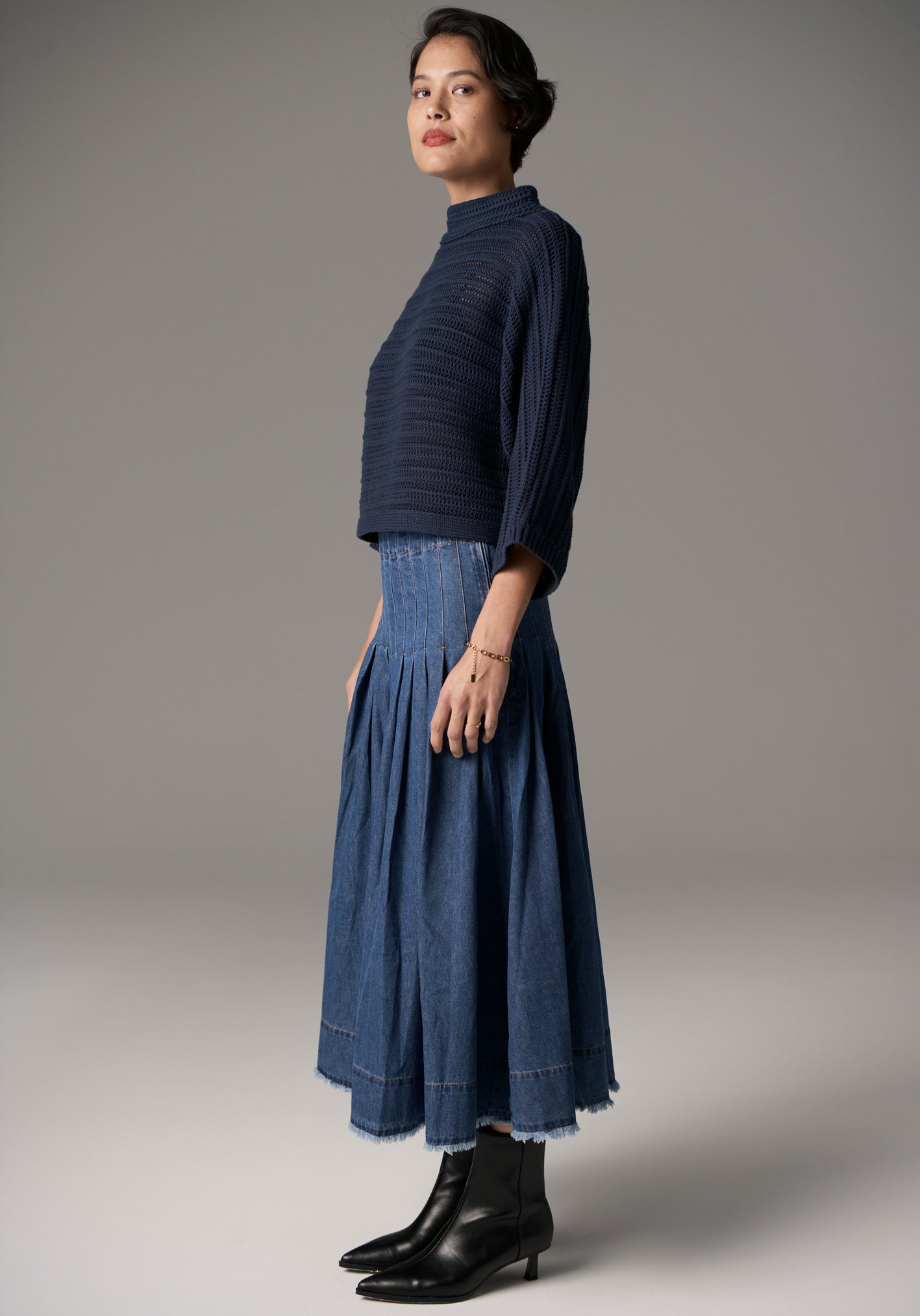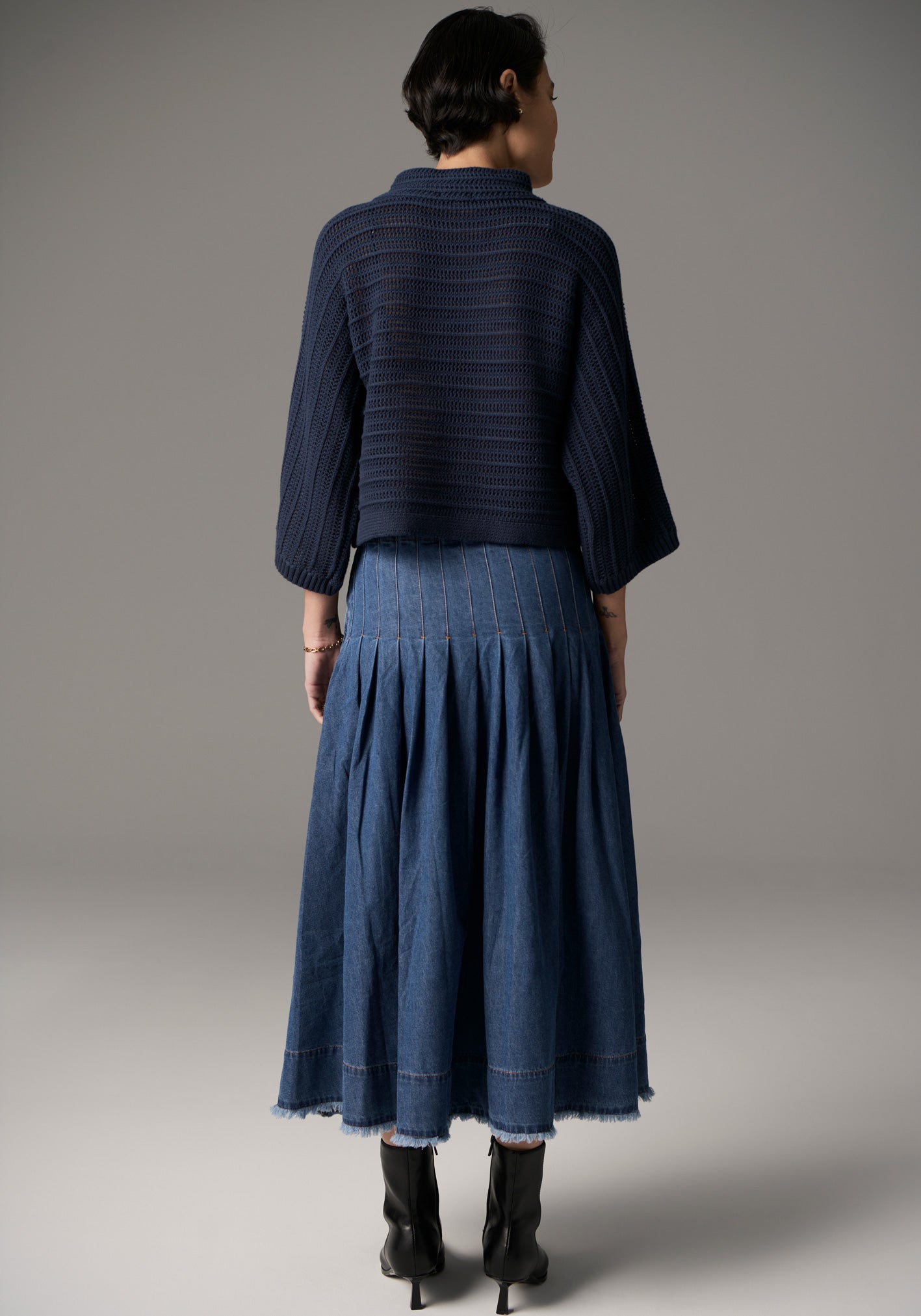 -Cropped length, perfect for wearing with high waisted skirts and jeans.