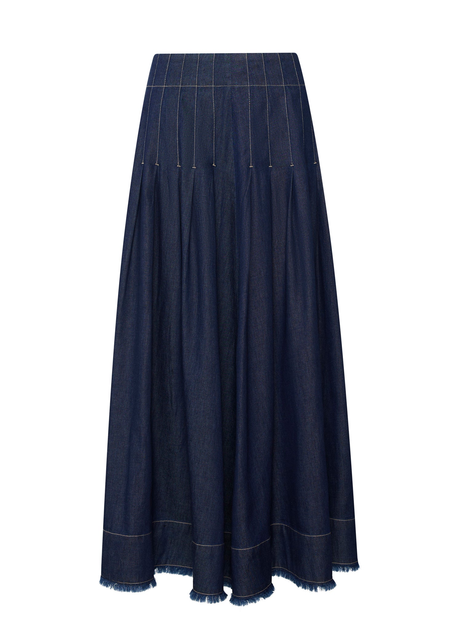 -Stitched down knife pleat detail over the hips, flaring out into a full silhouette.