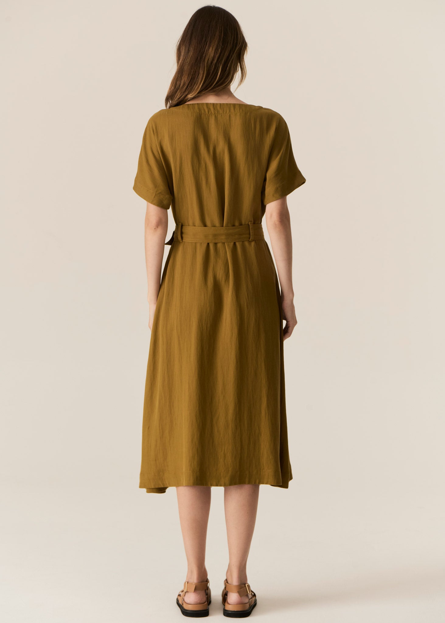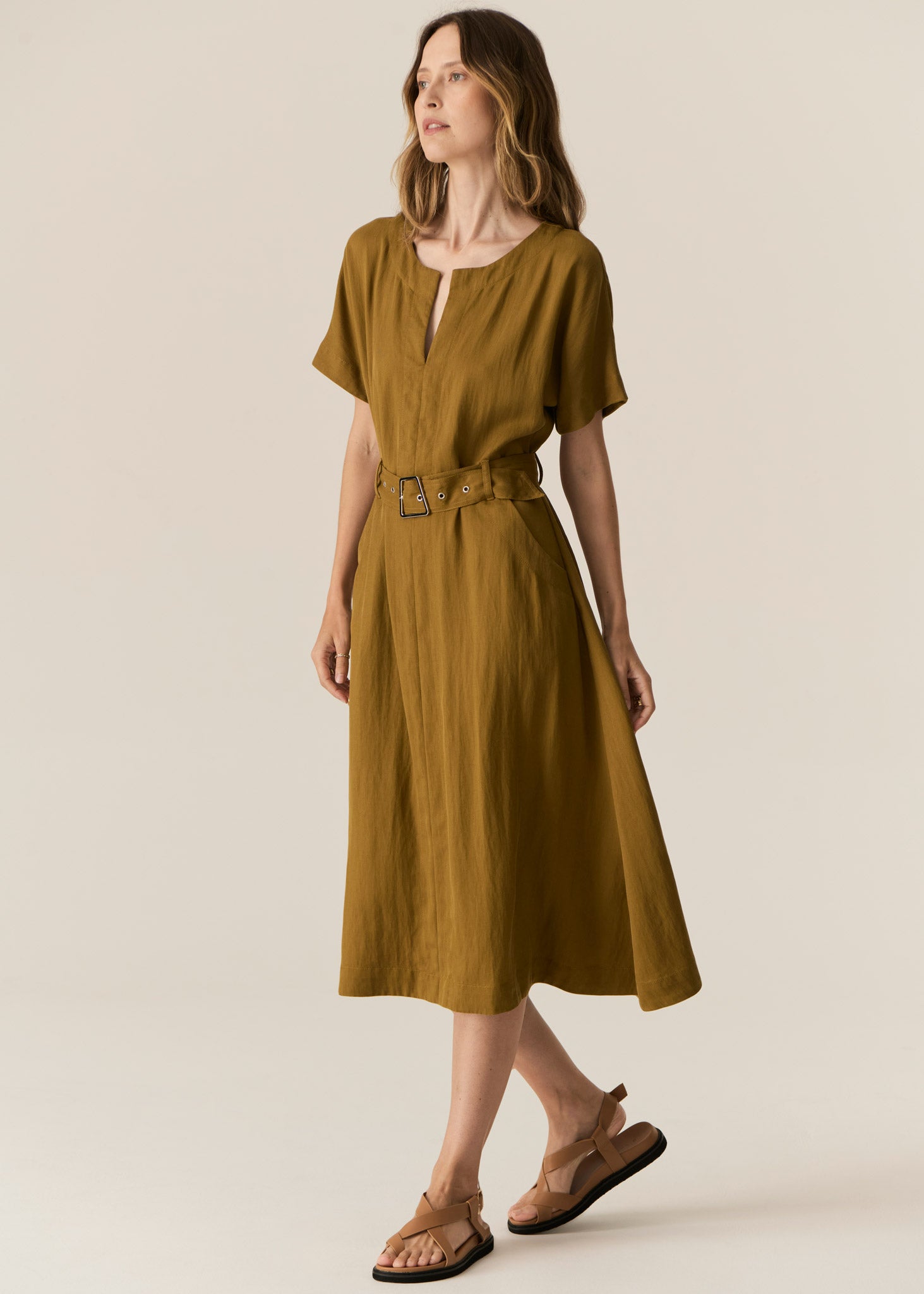 Made from a drapey soft suiting, the Faire Belted Dress is an elevated everyday style that can be dressed up or down.