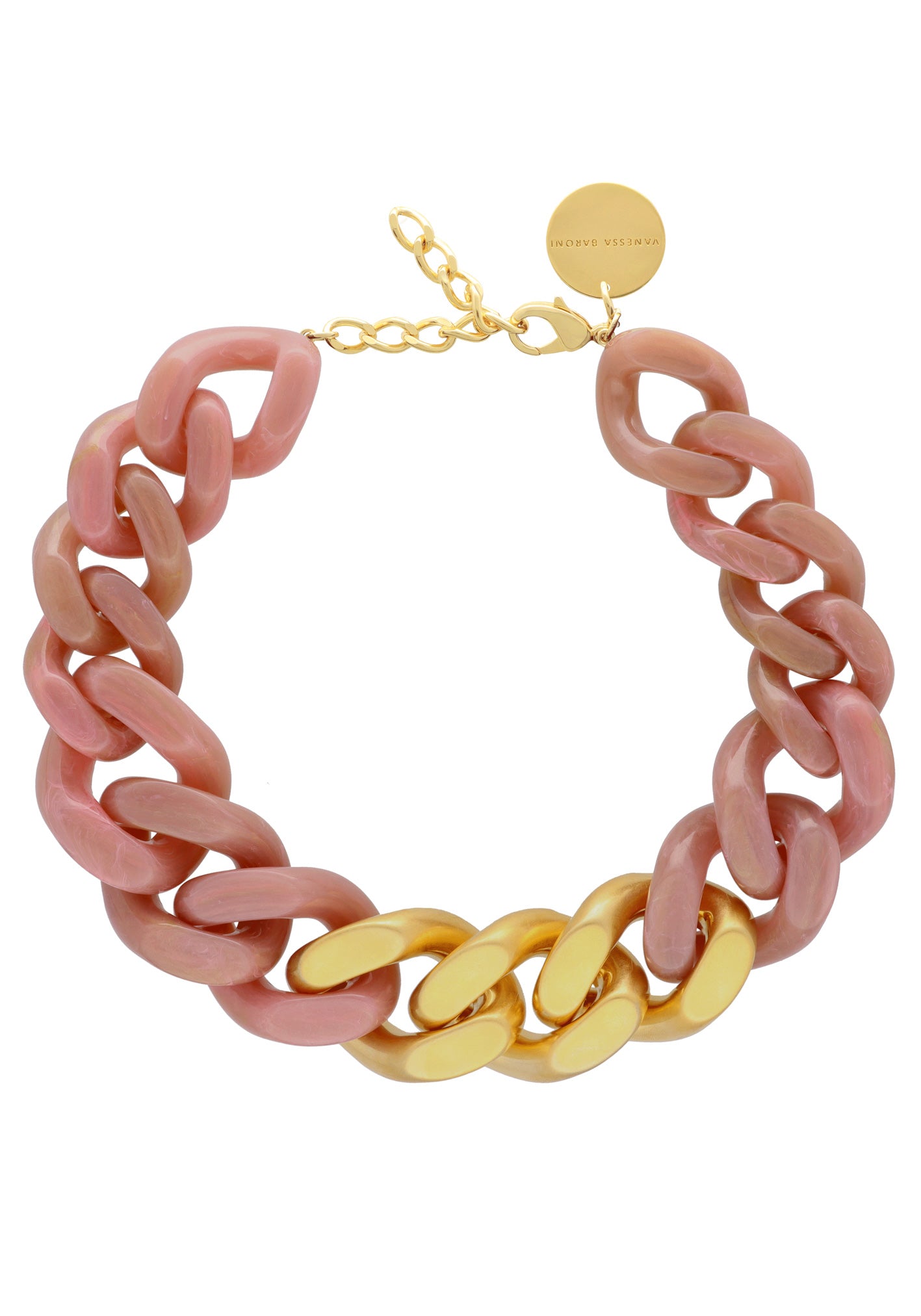 -Rose marble acetate with three antique gold acetate links in the centre.