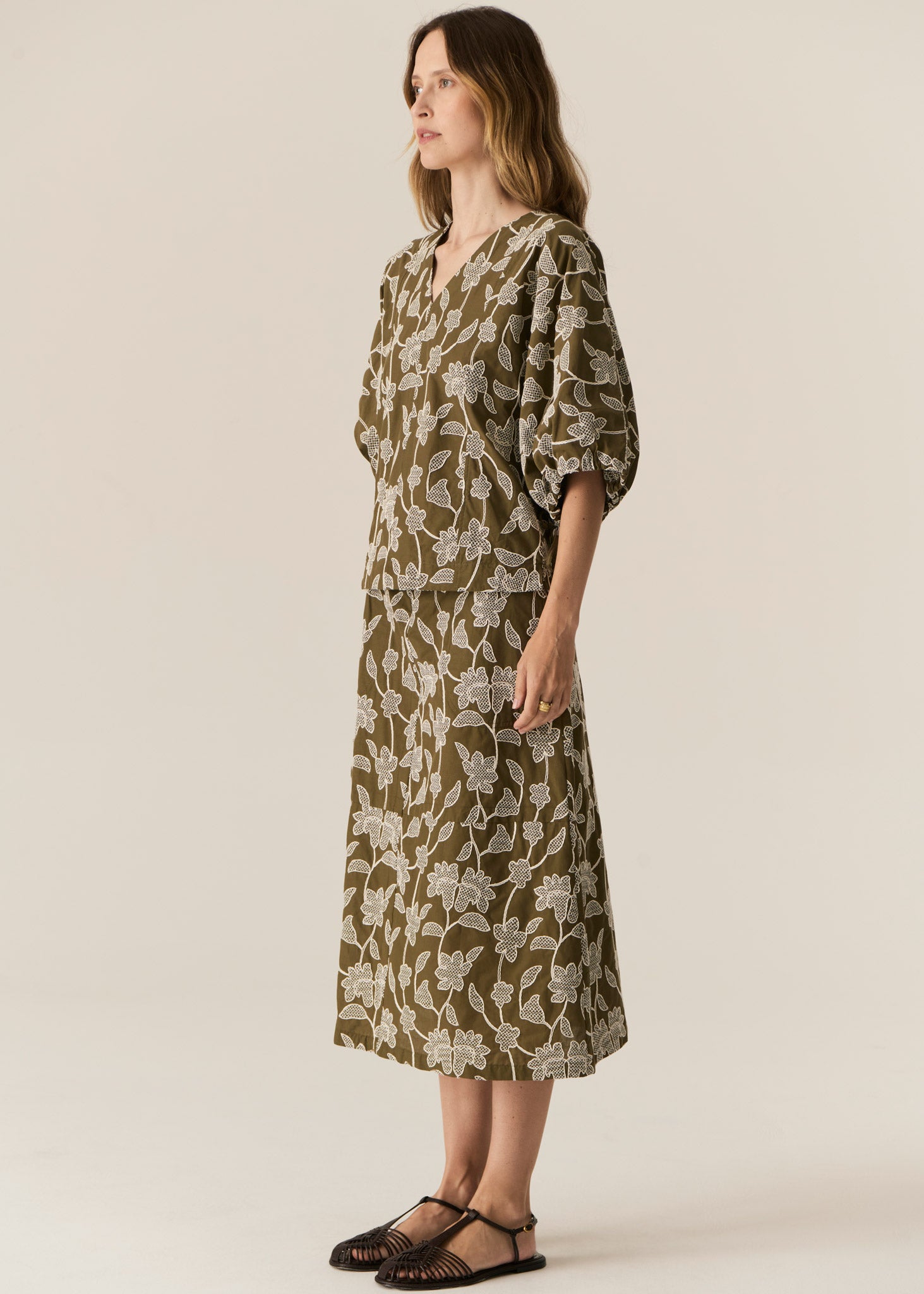 Made from a beautiful embroidered cotton, the Hugo Skirt has a classic a-line silhouette.