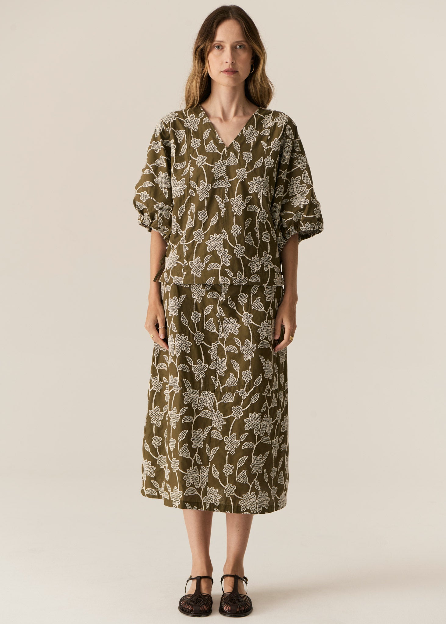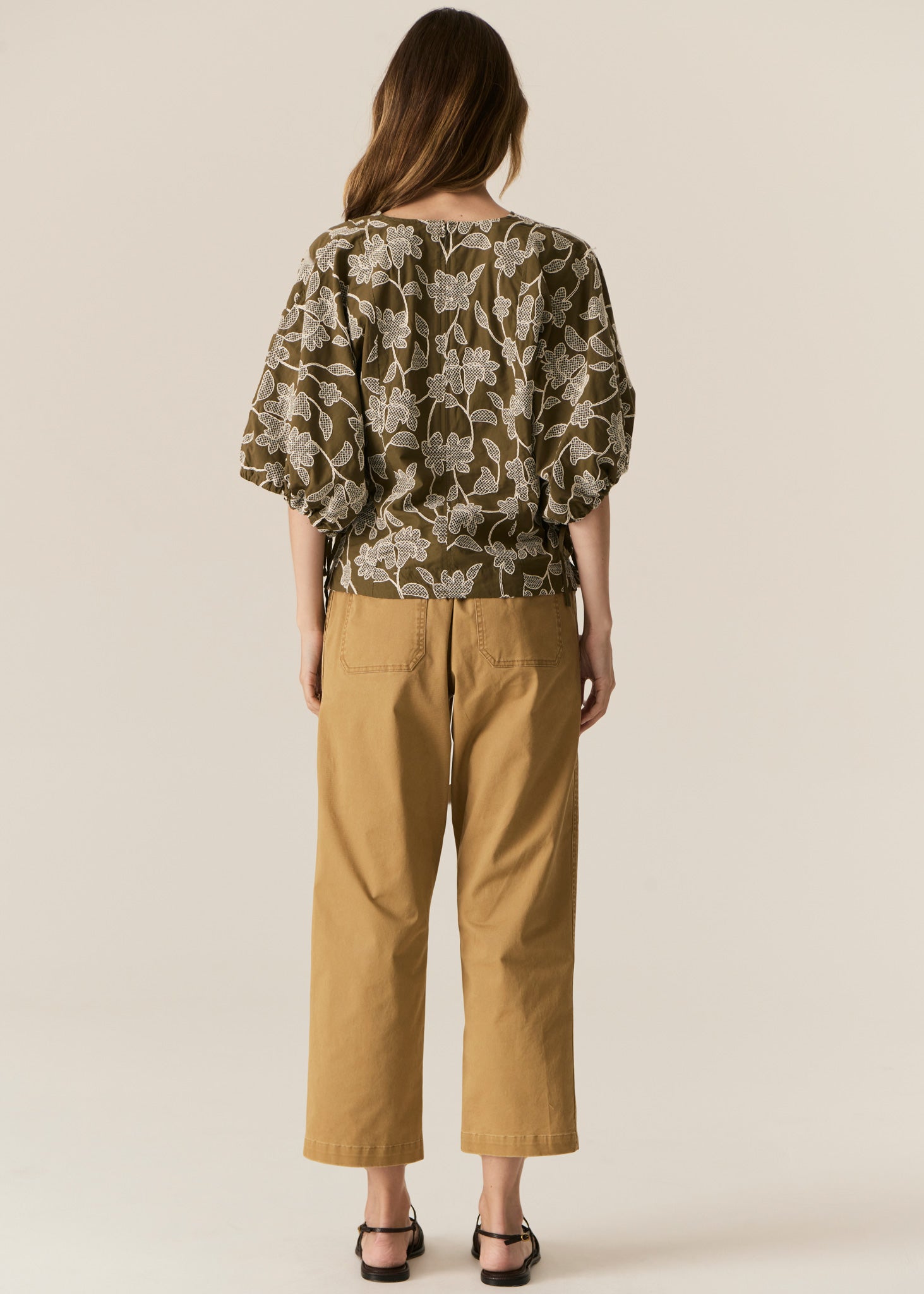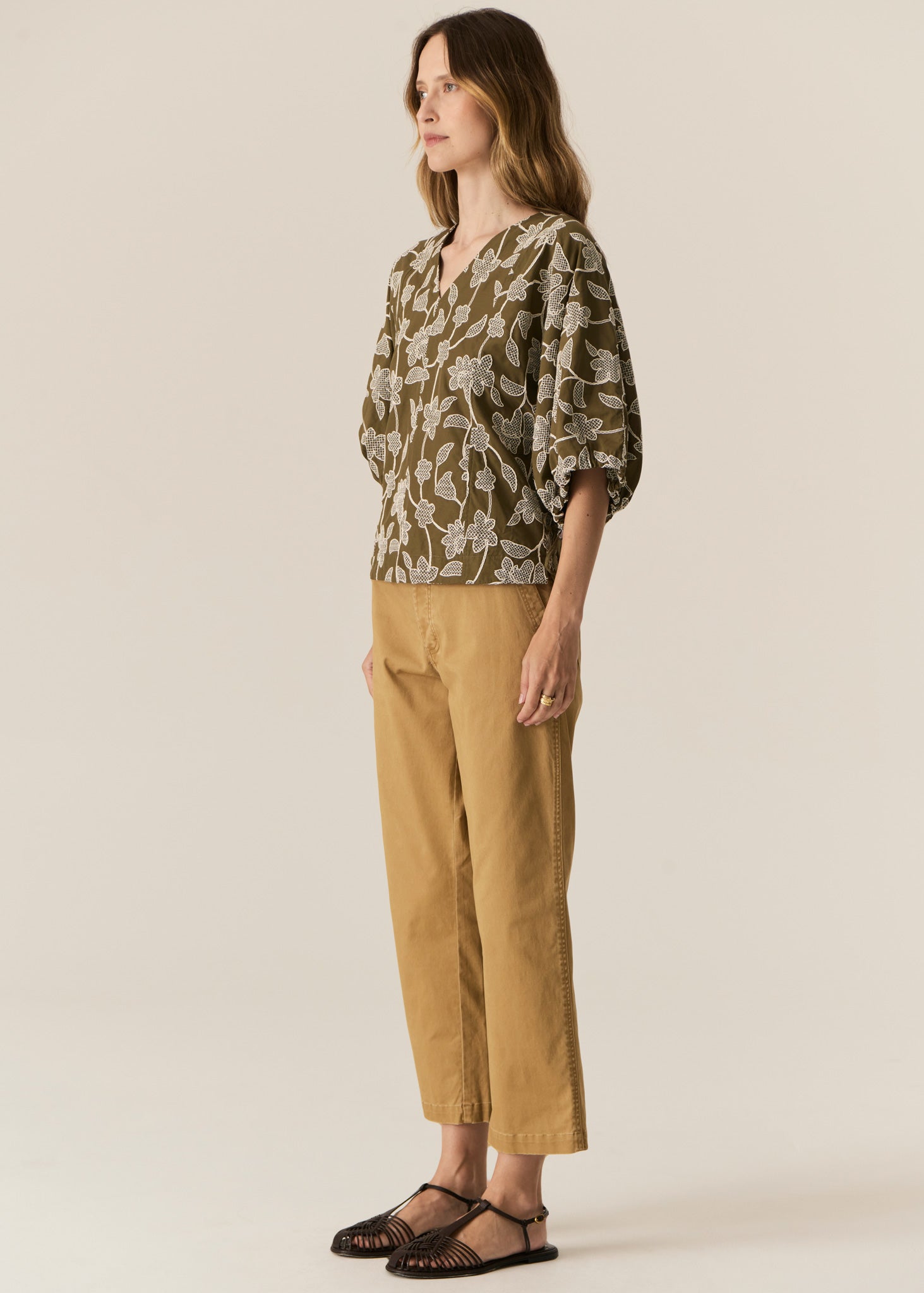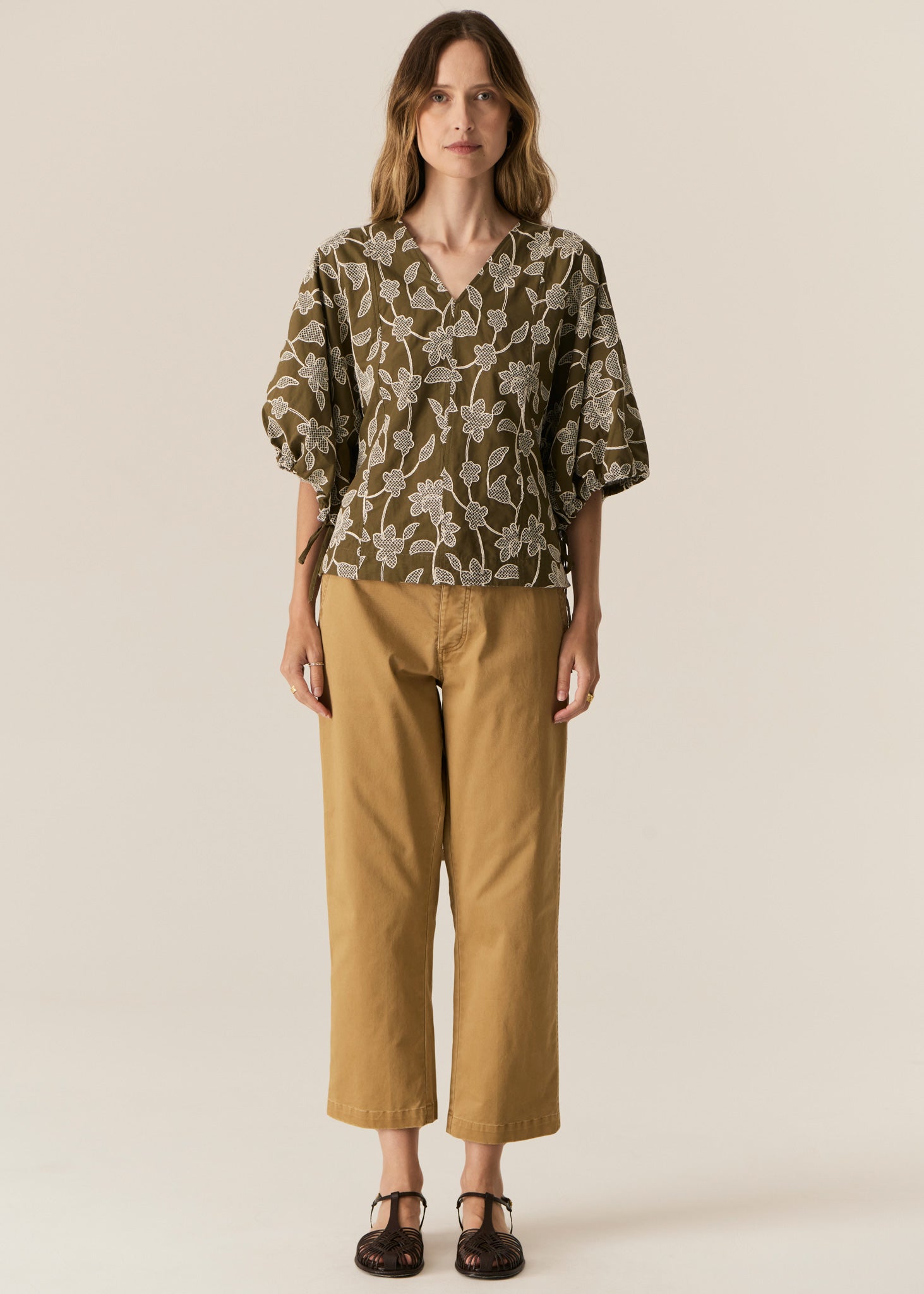 Made from a pure cotton with a floral embroidery, the Hugo Top features adjustable sleeves and a v-neckline.