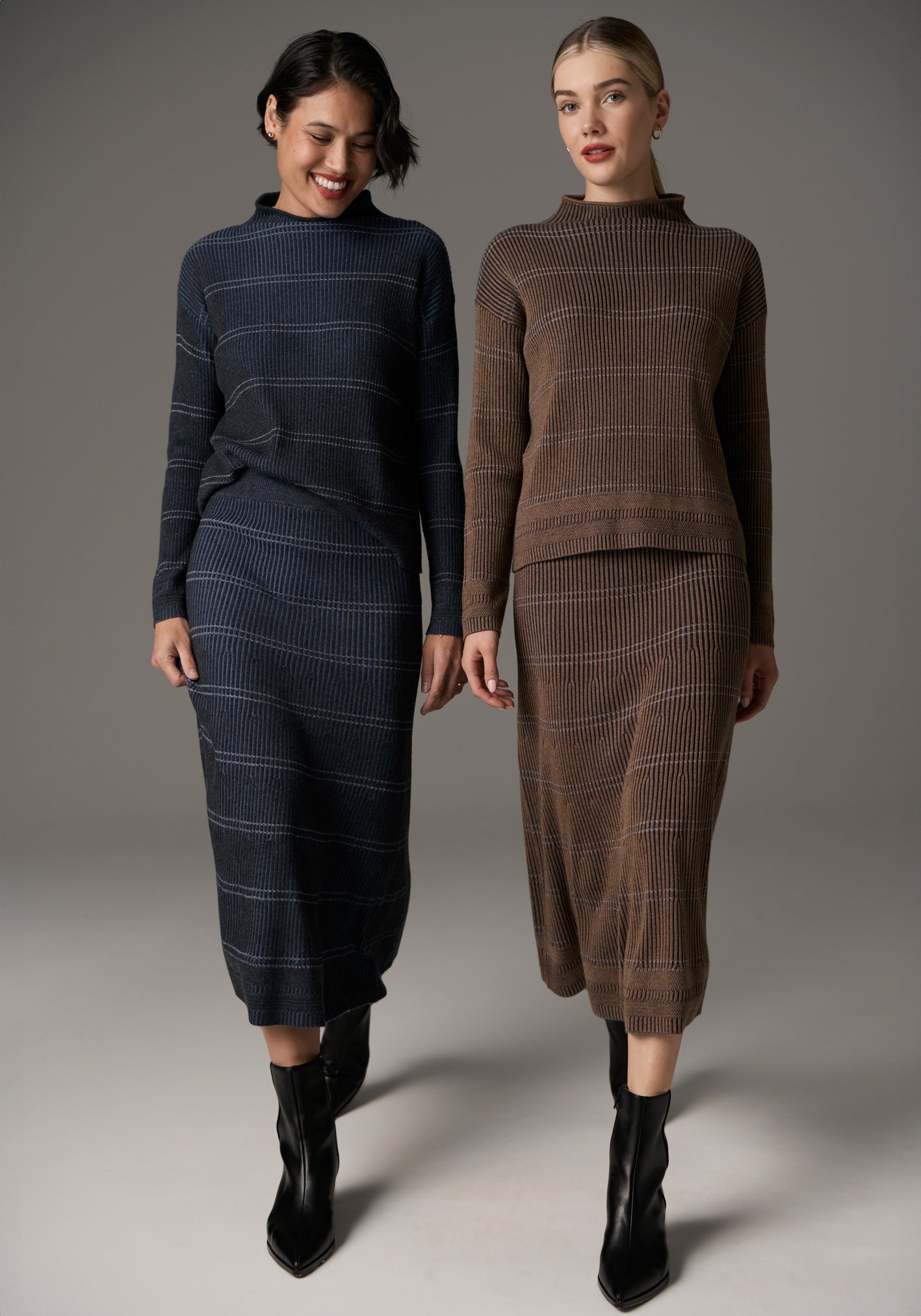 Knitted skirts are a Winter favourite for us, and we are absolutely in love with the Lara Knit Stripe Skirt this season.