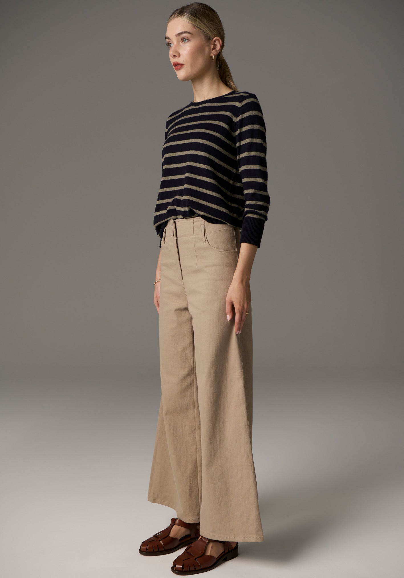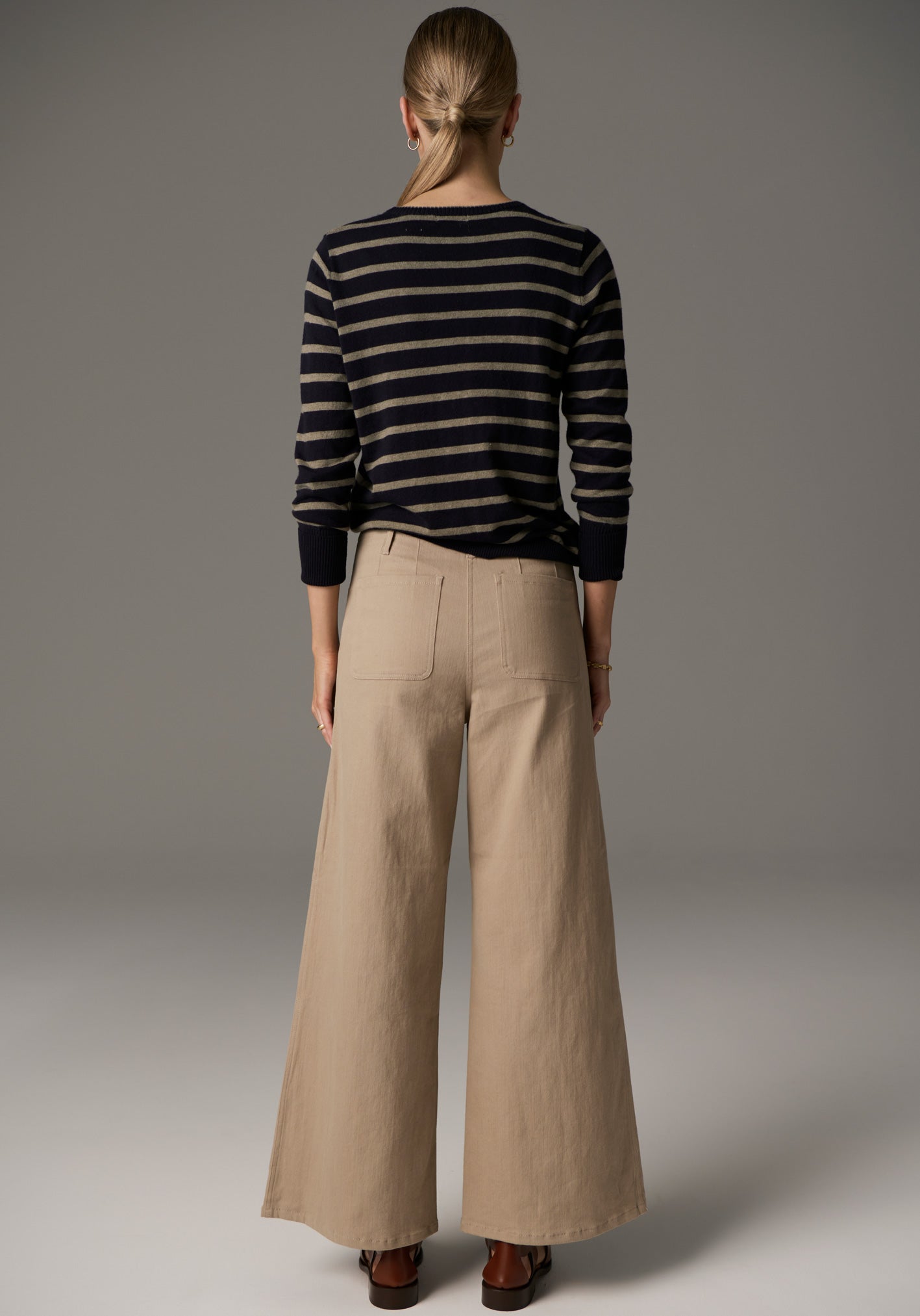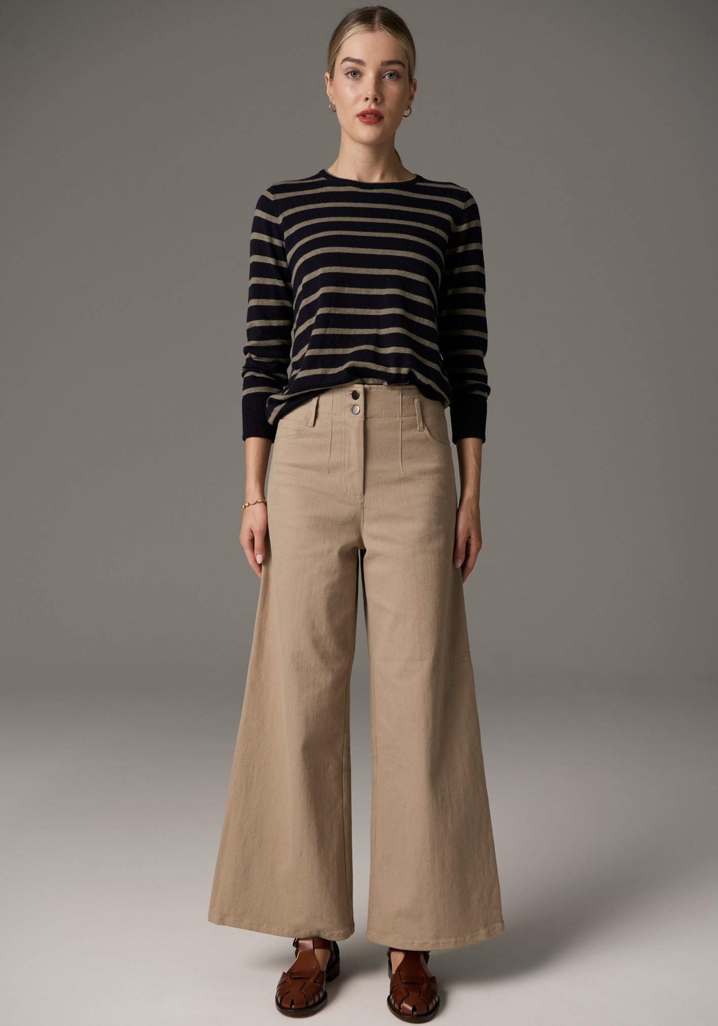 -Wide leg cropped silhouette.