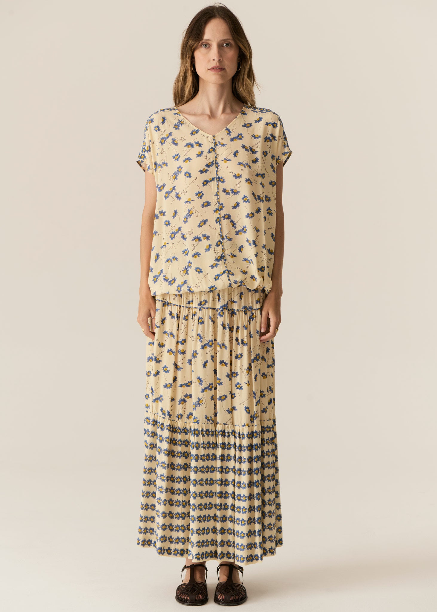 Soft and flowy with two variations of the same floral, the Lienne Tiered Skirt is easy to wear yet elevated.