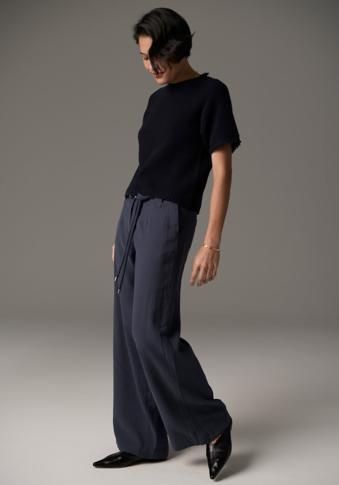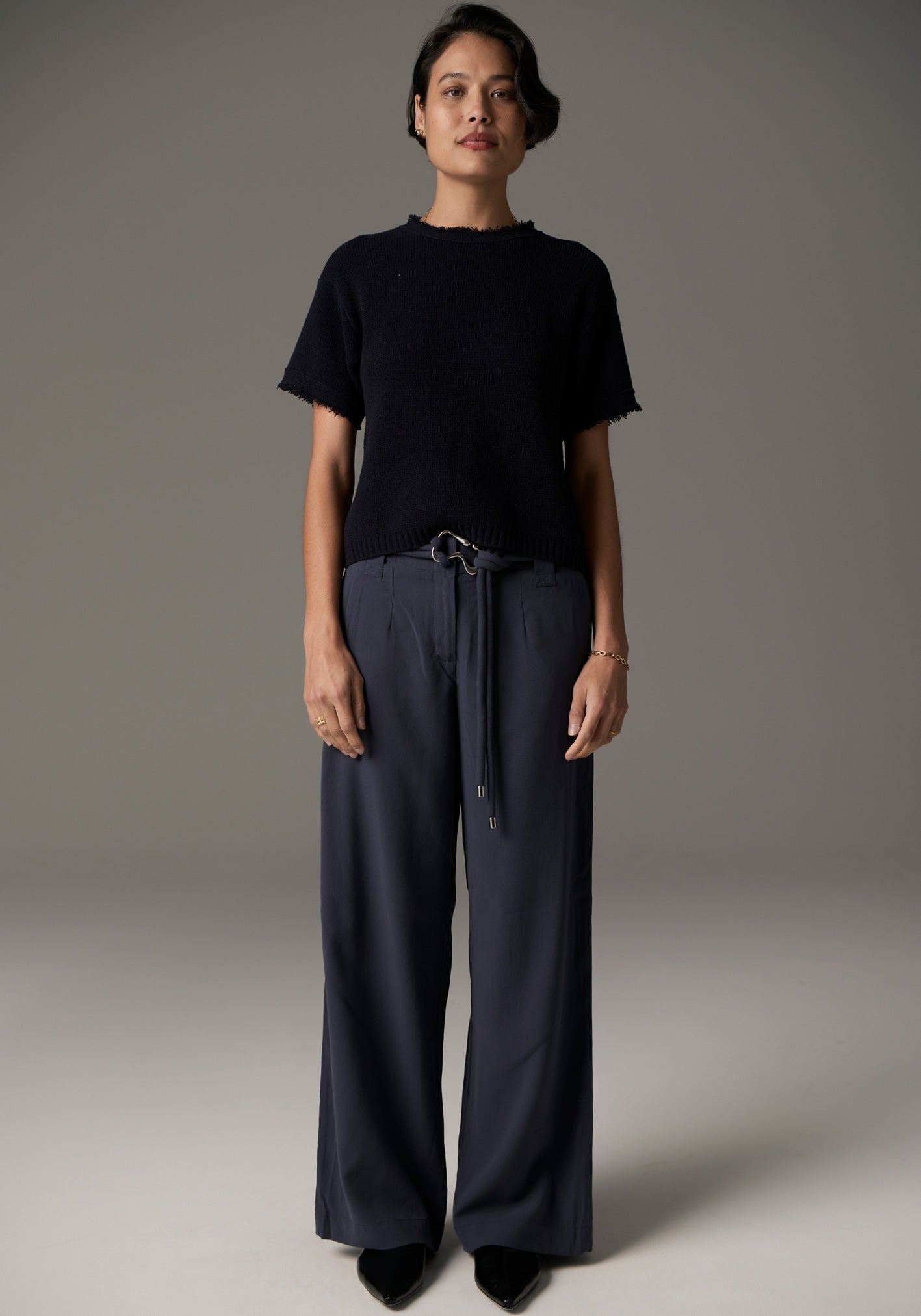 Featuring an elevated belt buckle and a wide leg silhouette, the Lou Belted Pants are a modern take on suiting perfect for workwear or weekends.
