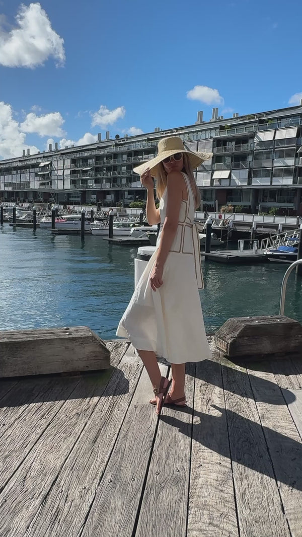 Featuring a square neckline and Raffia trim detailing throughout, the Marlin Raffia Dress is perfect for all of your Summer occasions!