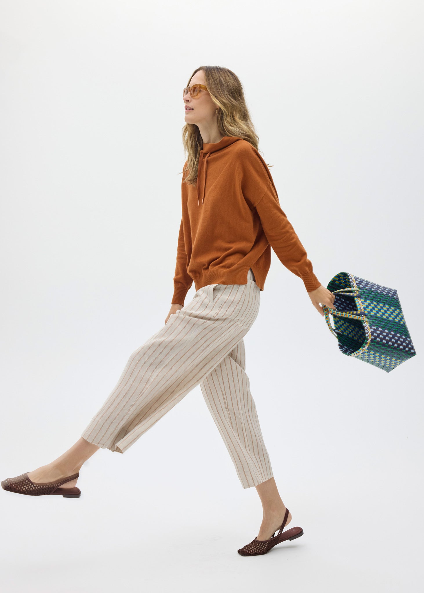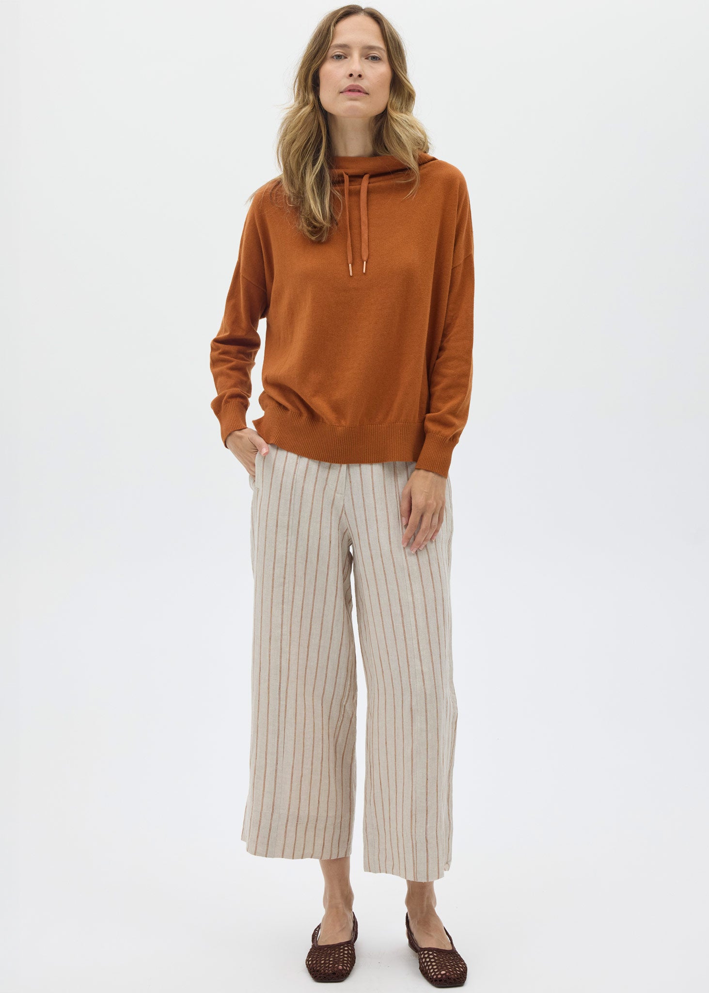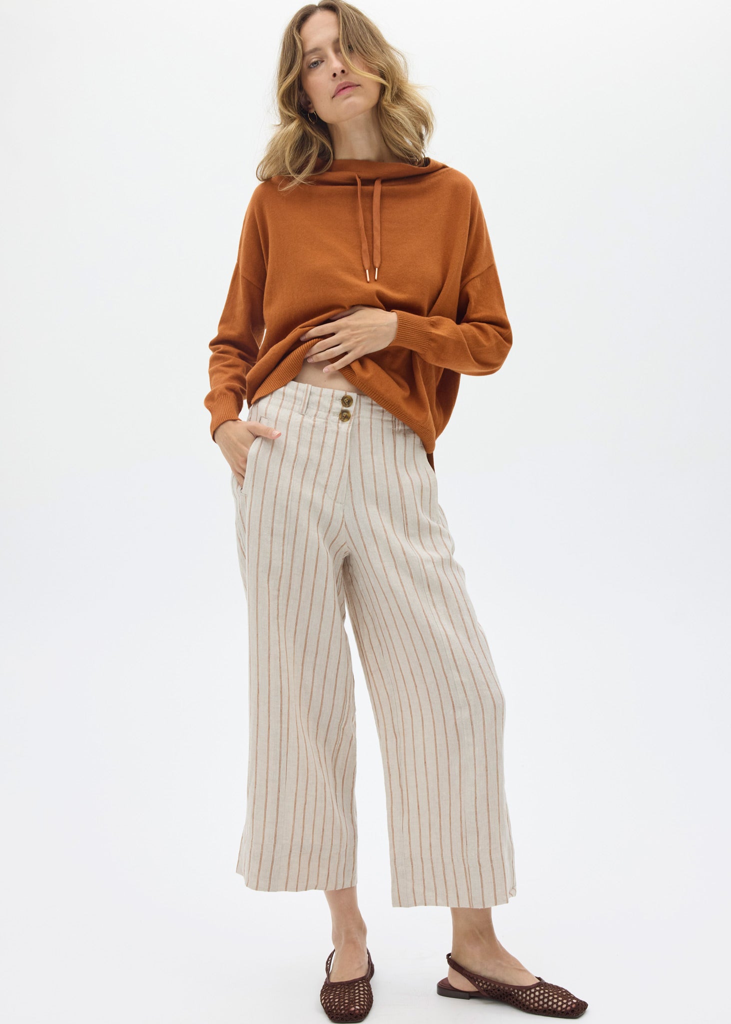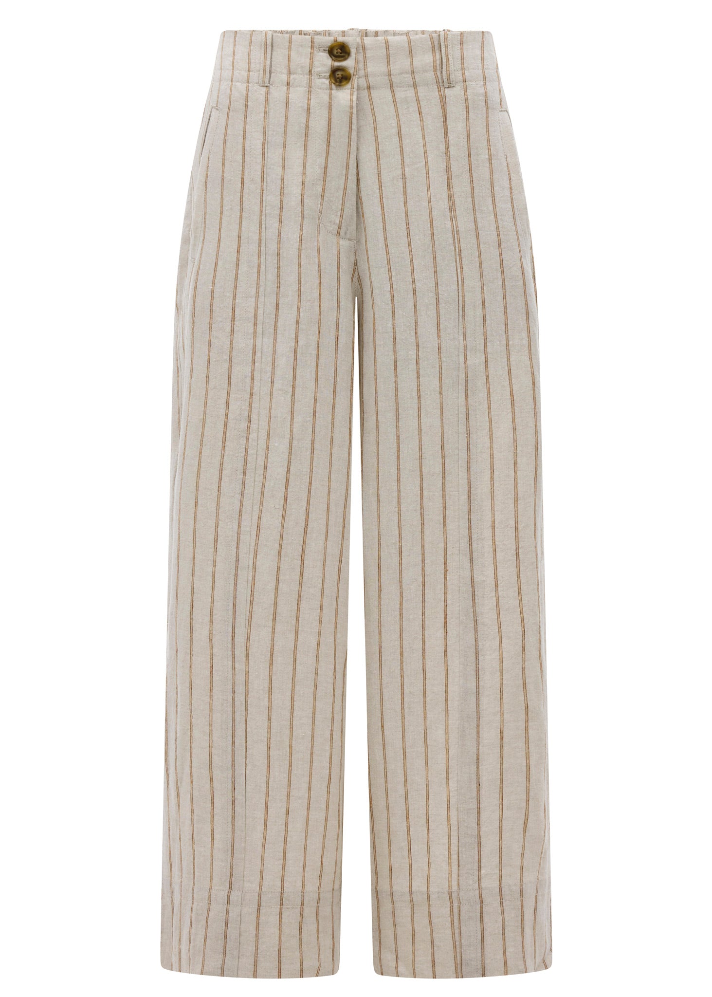 The Miley Linen Stripe Pant is our Raydel Denim Pant reimagined in a lightweight pinstripe linen. Made from deadstock fabric.