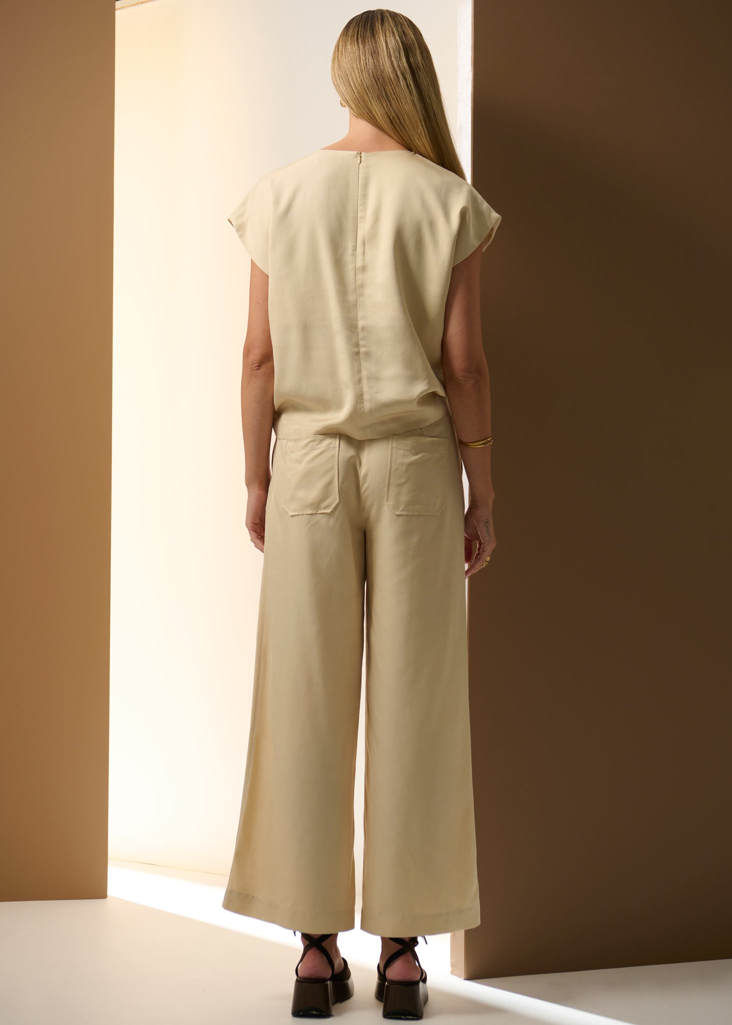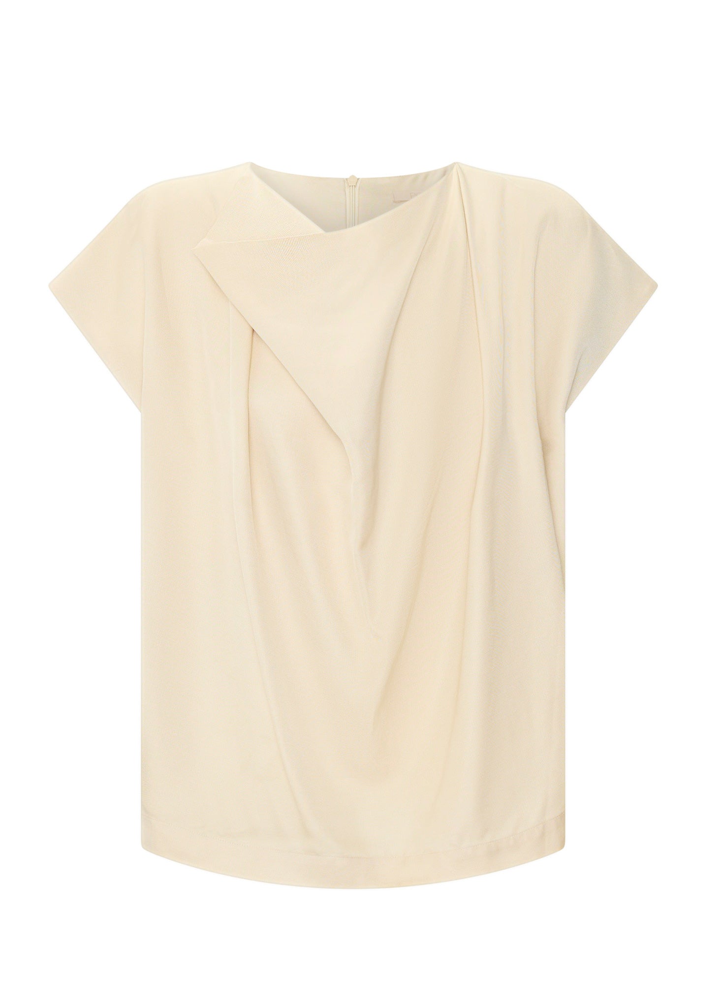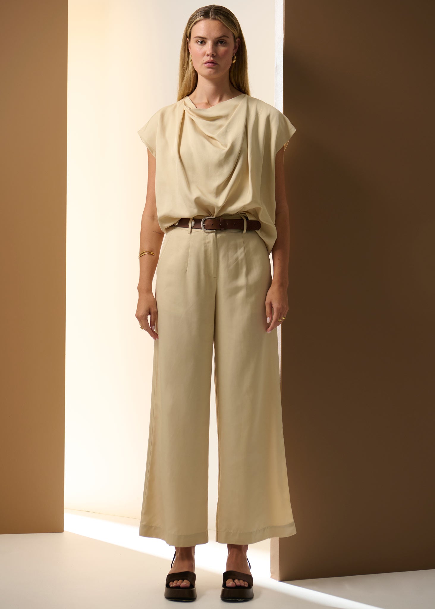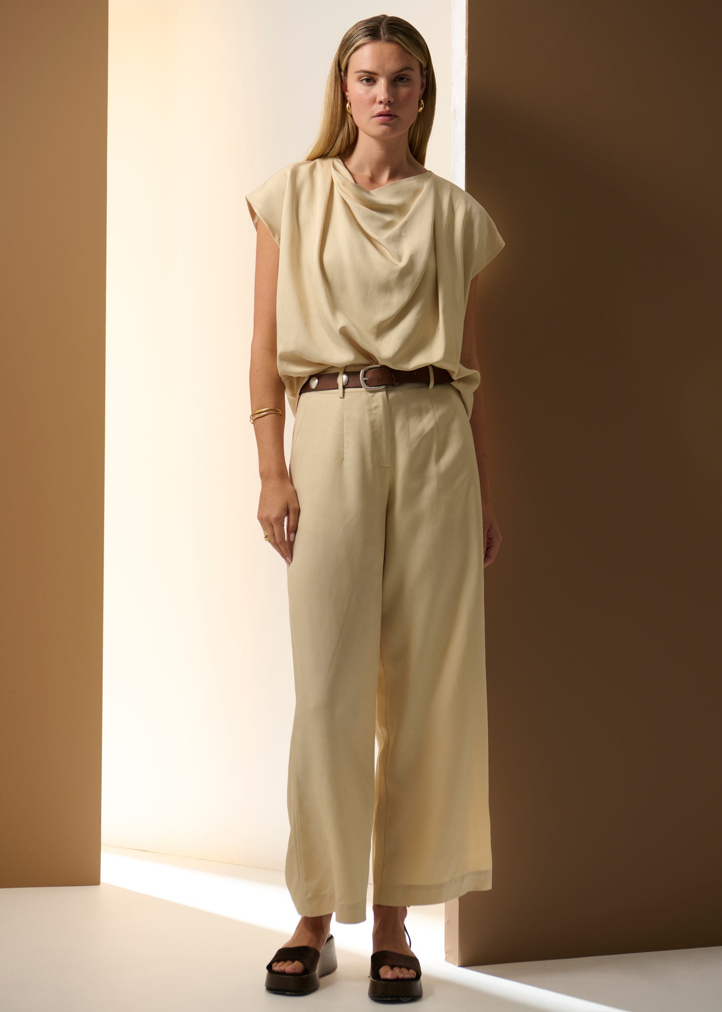 The Nubo Draped Top features a cowl neckline, cap sleeves, and an elevated draped fit through the body.