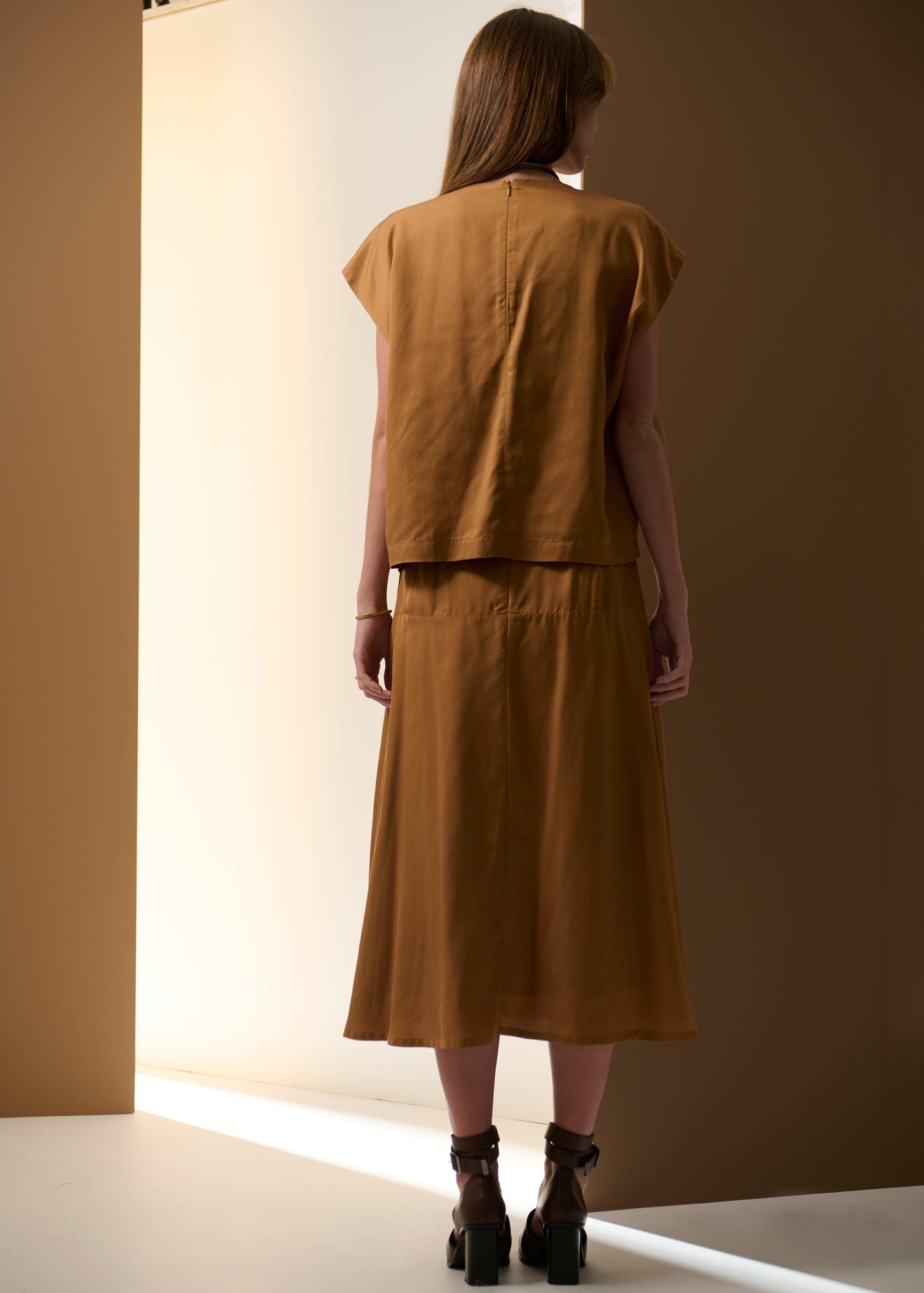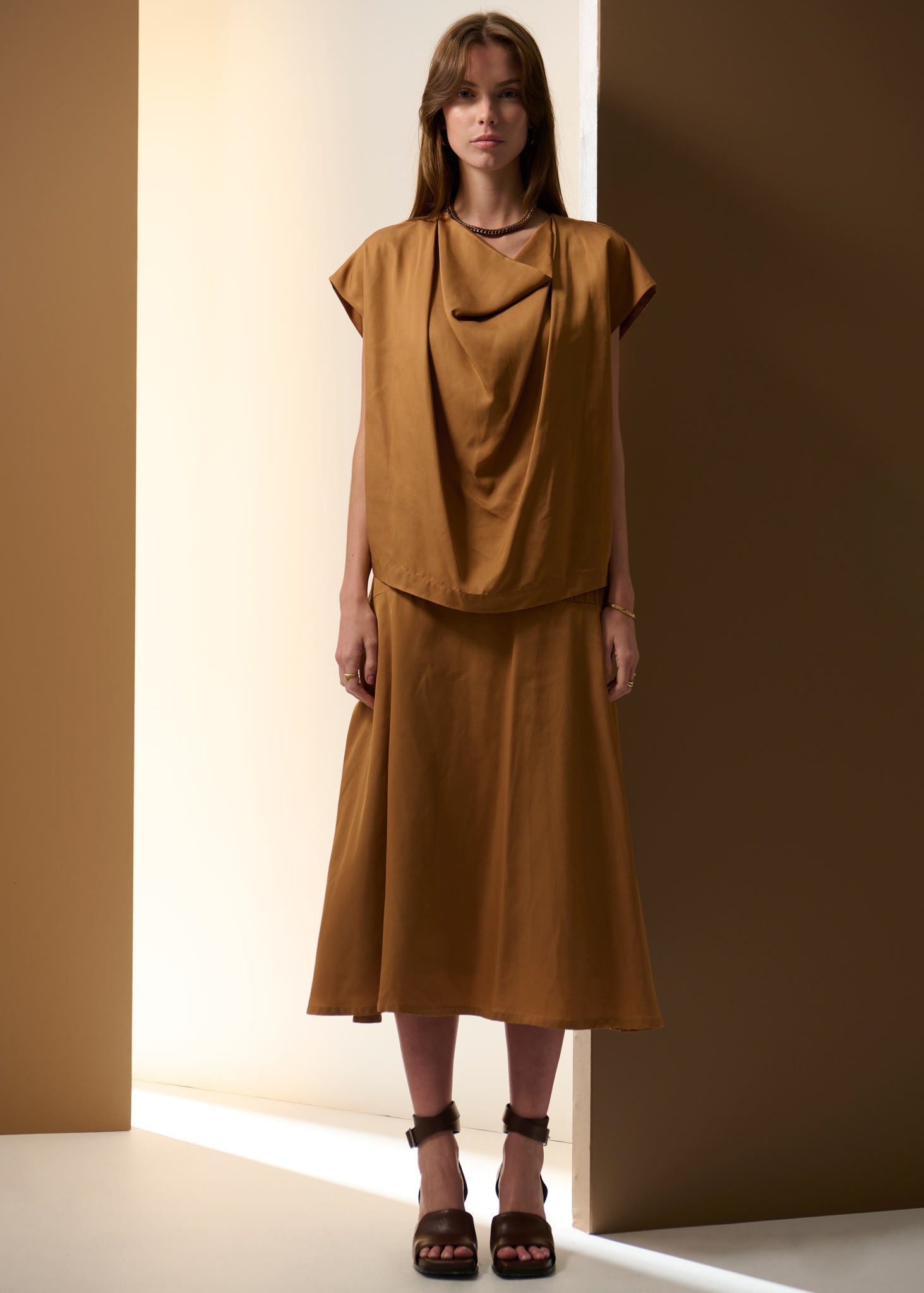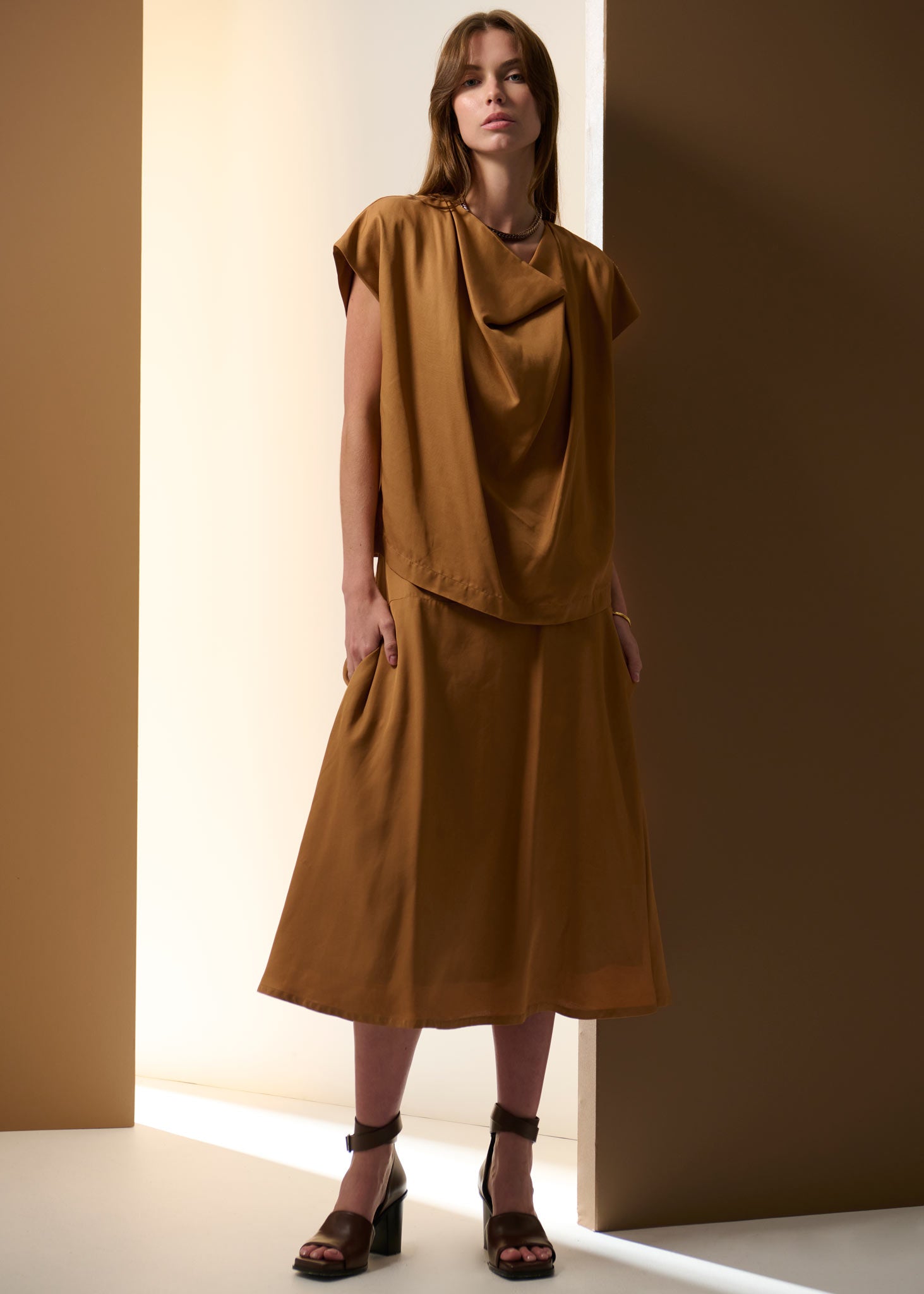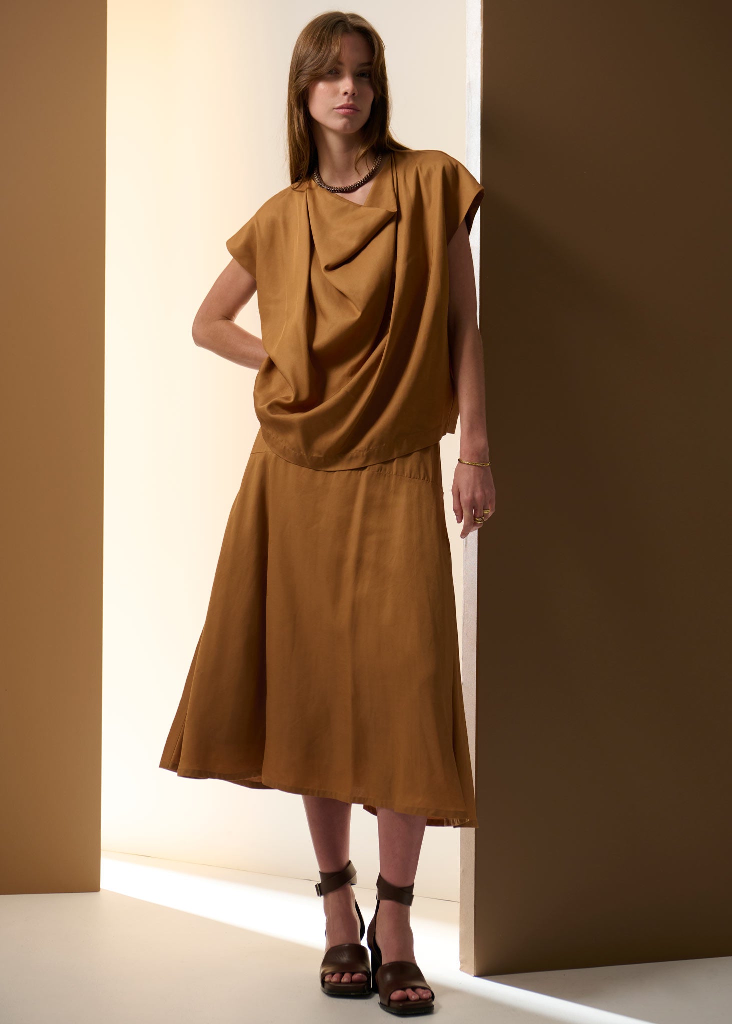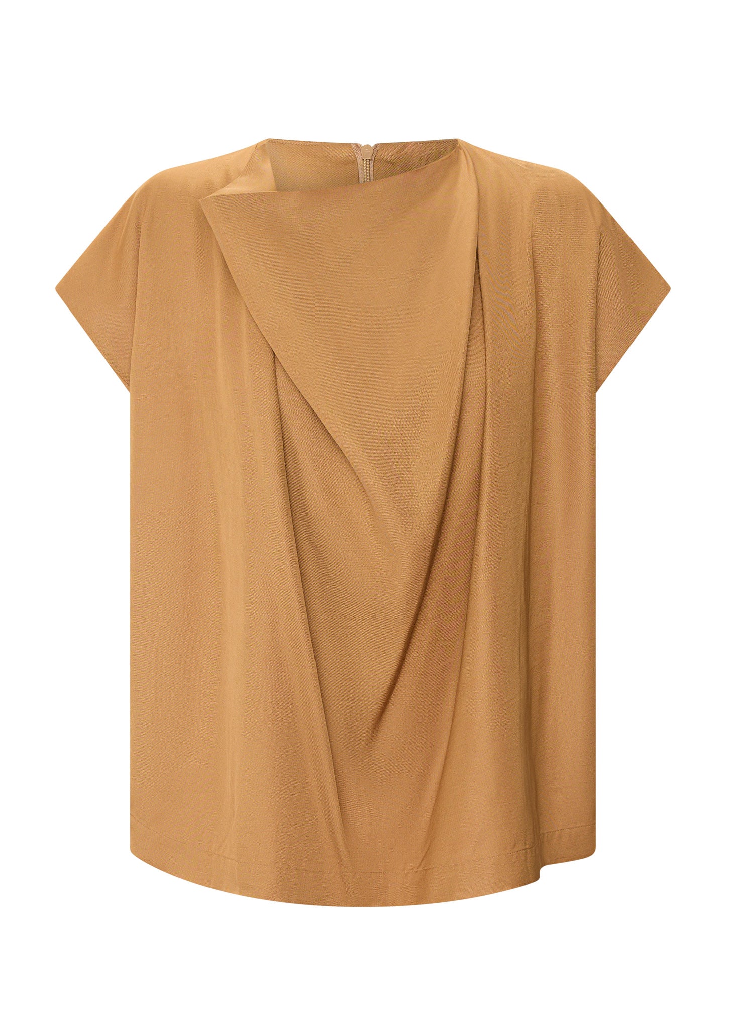 The Nubo Draped Top features a cowl neckline, cap sleeves, and an elevated draped fit through the body.