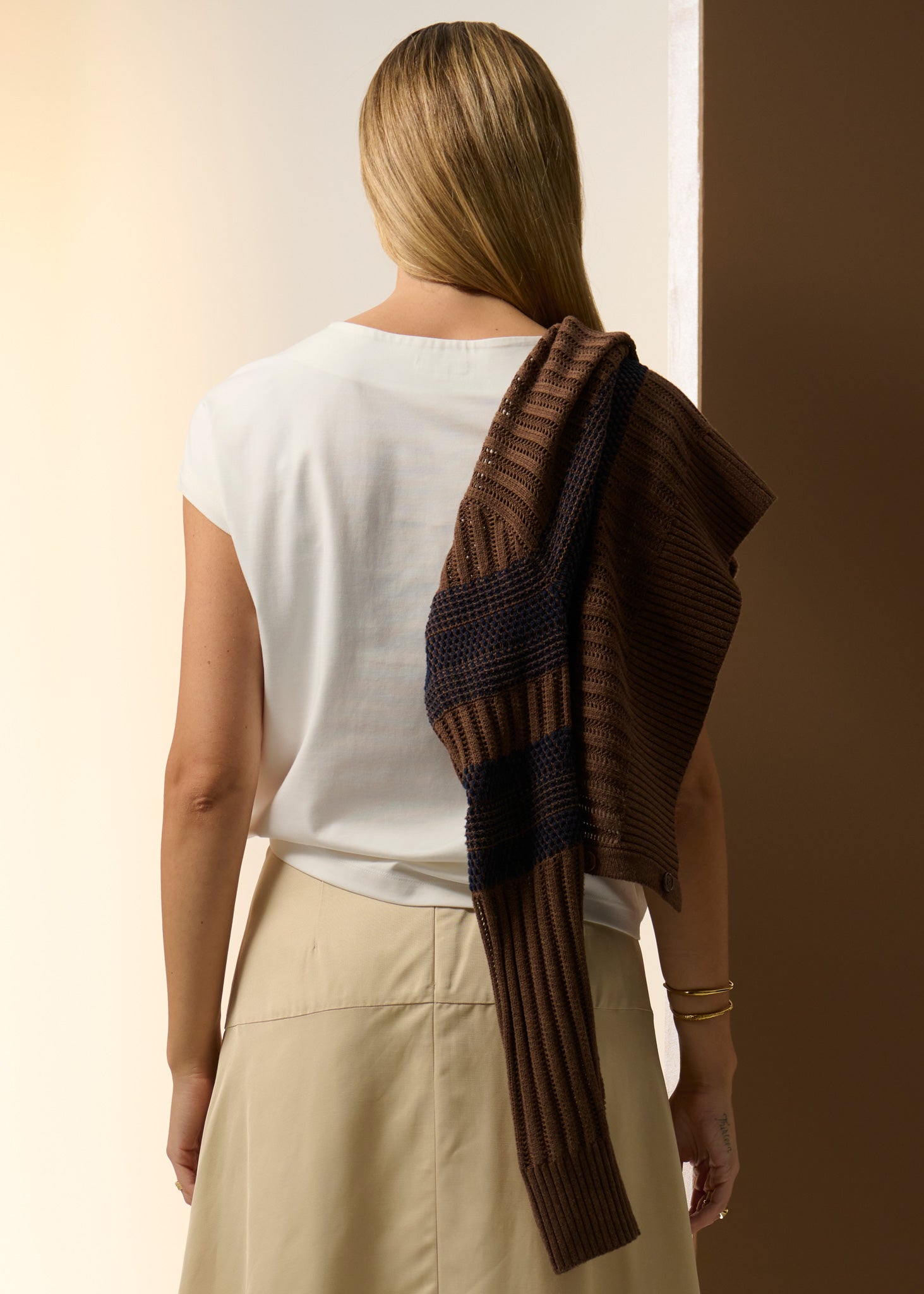Inspired by our bestselling Mast Tee, the Odie Tee is made from an elevated, drapey jersey with a knitted detail at the cuffs.