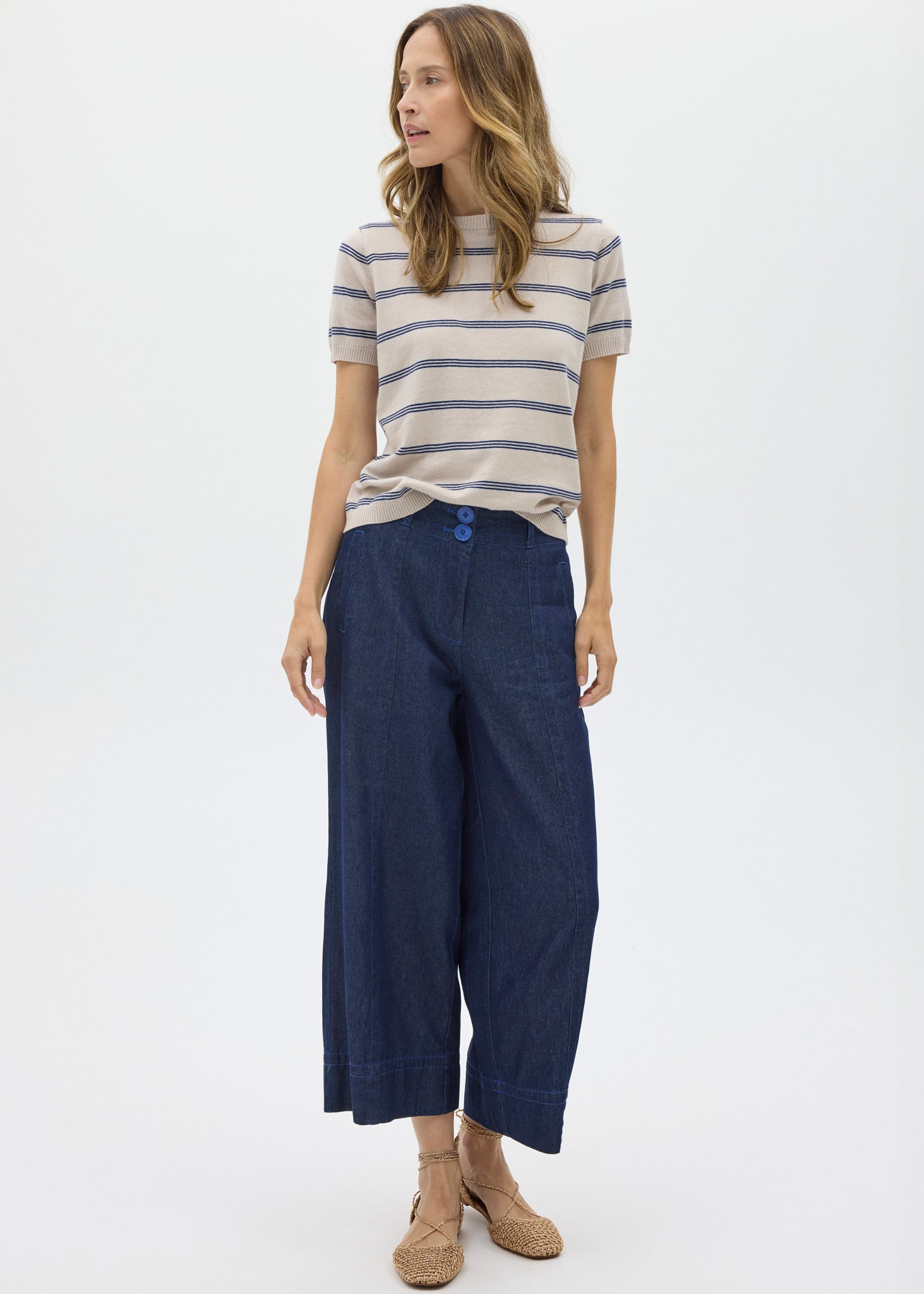 The Raydel Denim Pant is our most popular style ever, and we’ve now brought it back in three new exclusive colour ways. Featuring an elasticised waist, wide, cropped leg and made from cotton, this style is the perfect mix of comfortable and polished, now with cute contrast detailing.
