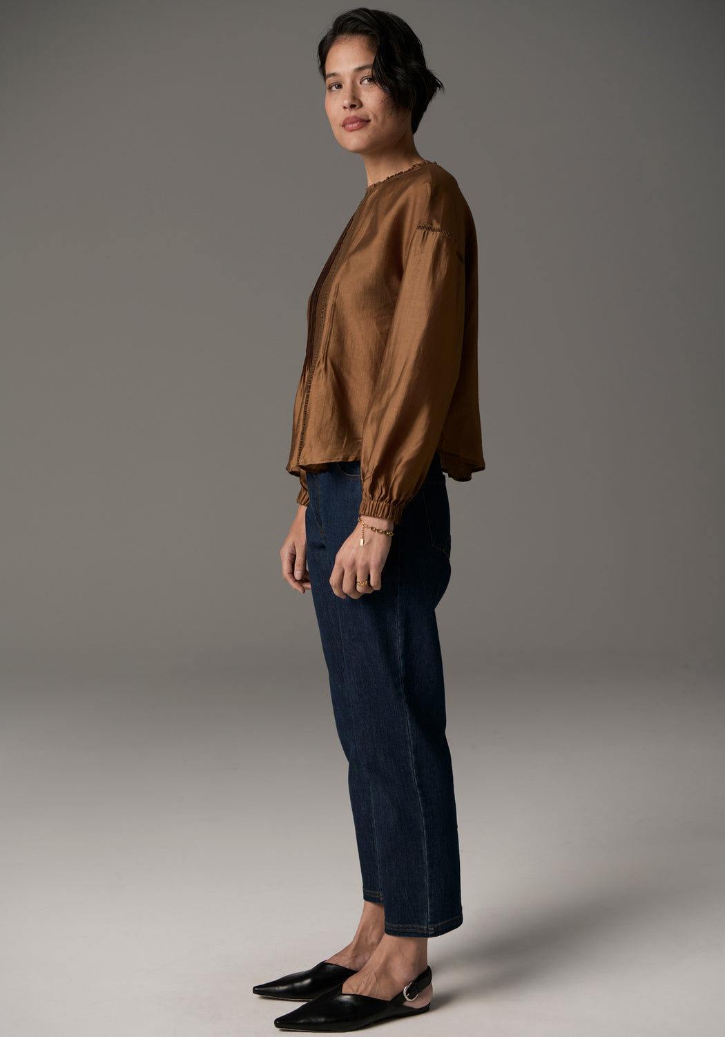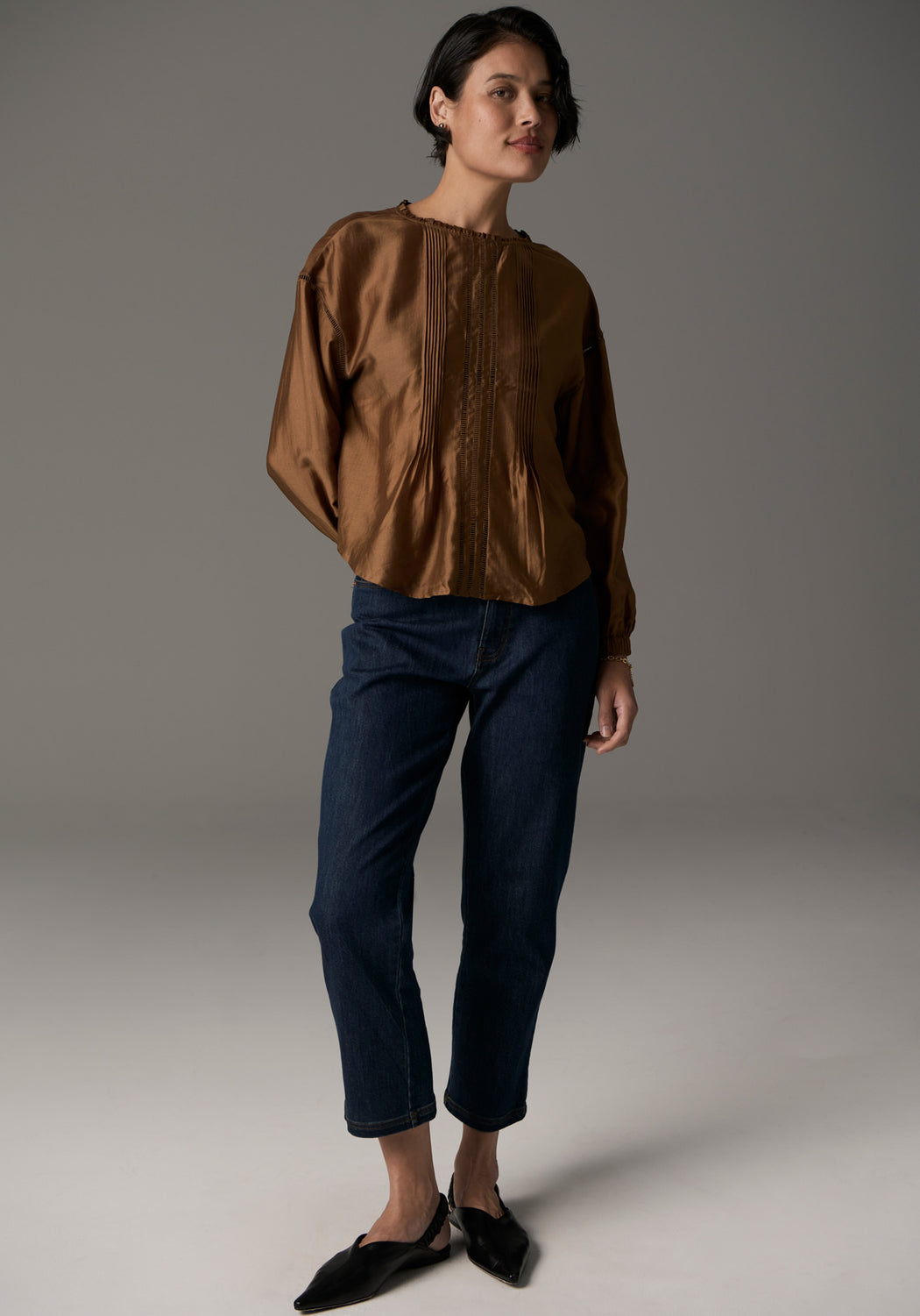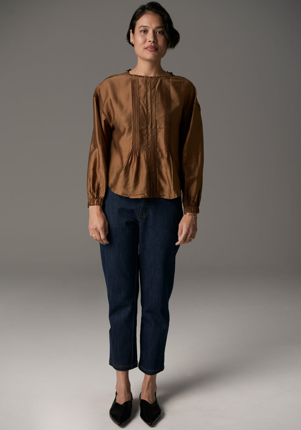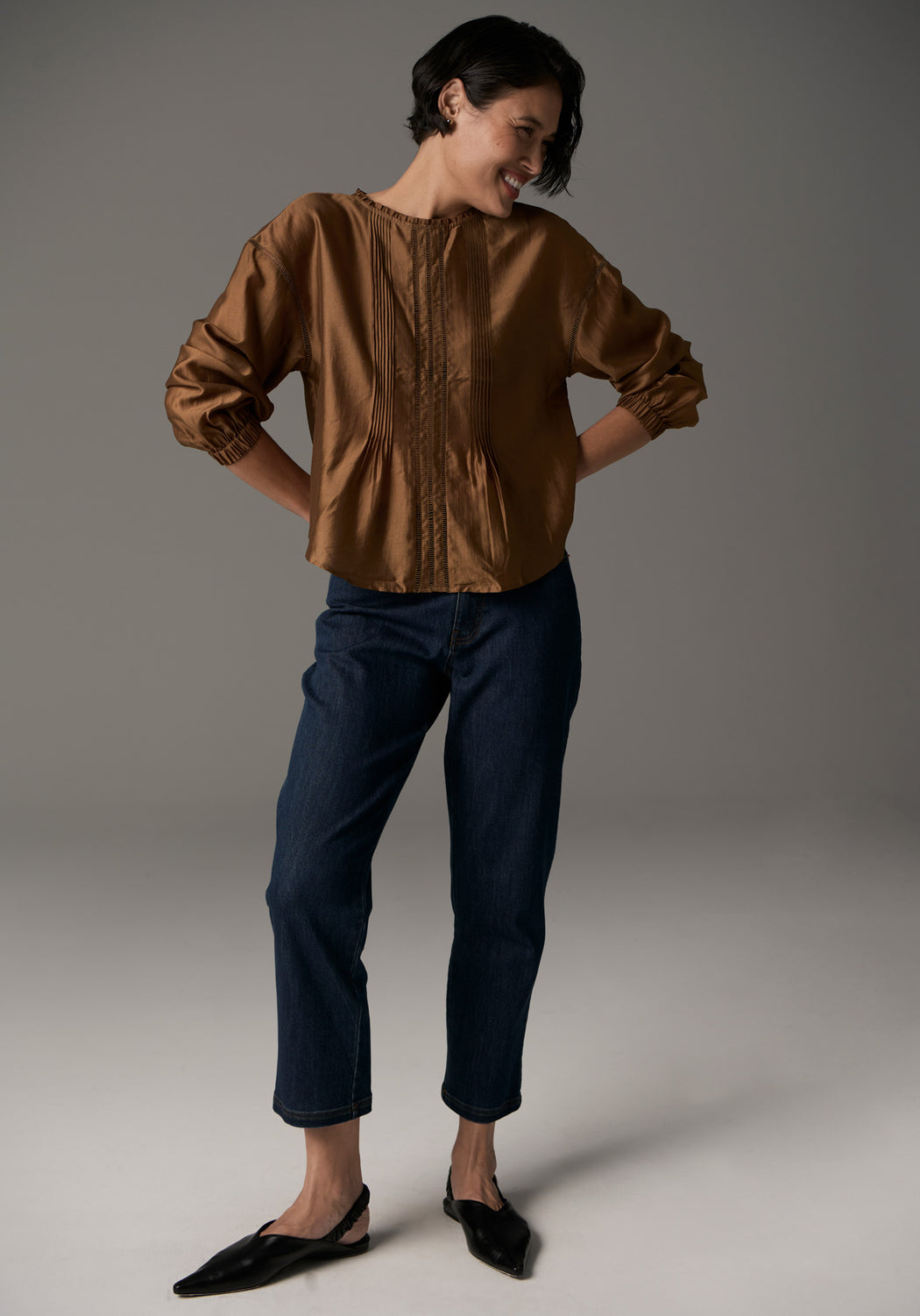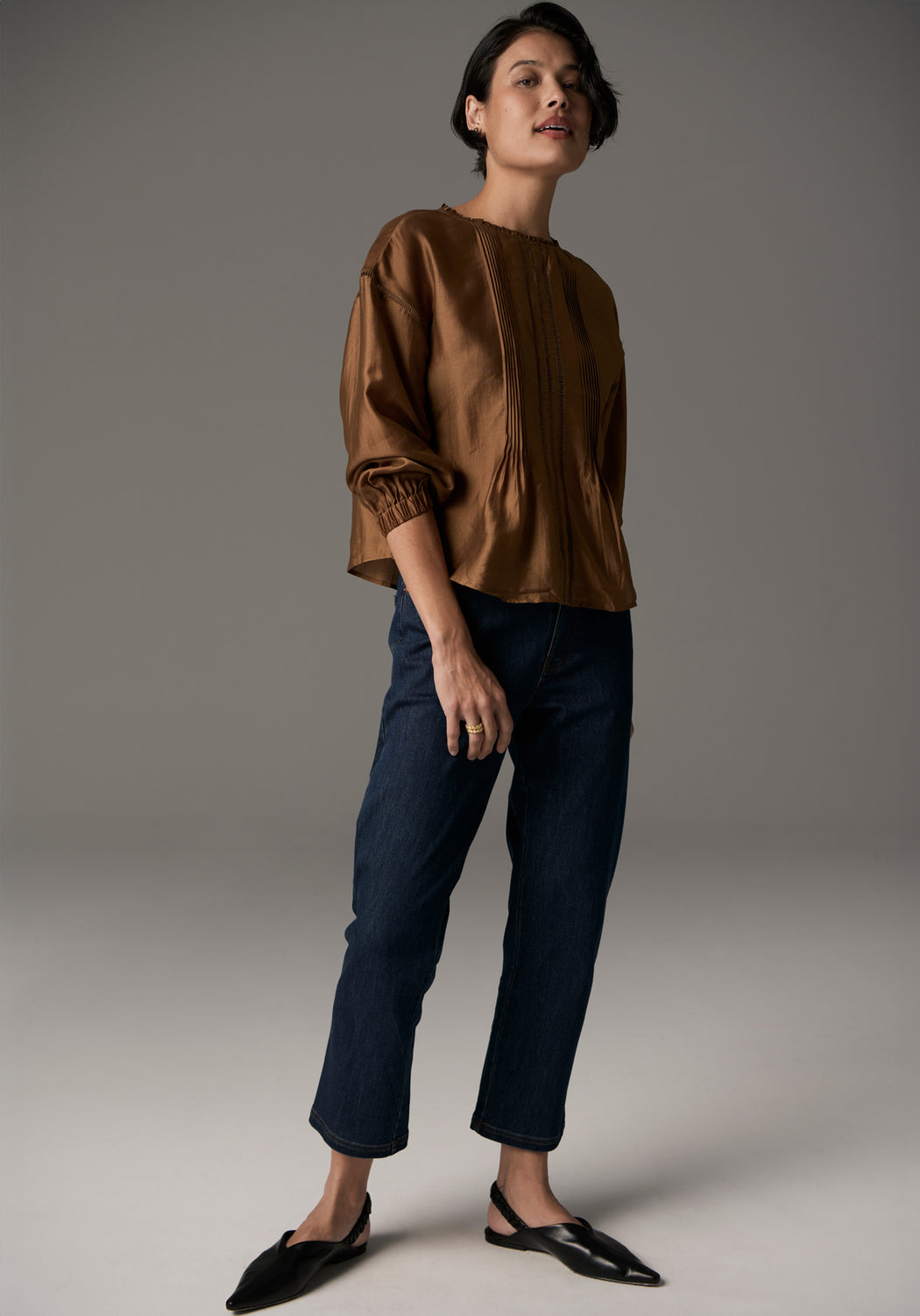 Made from a lightweight and textured tencel blend, the Rhea Pintuck Top features femme detailing.