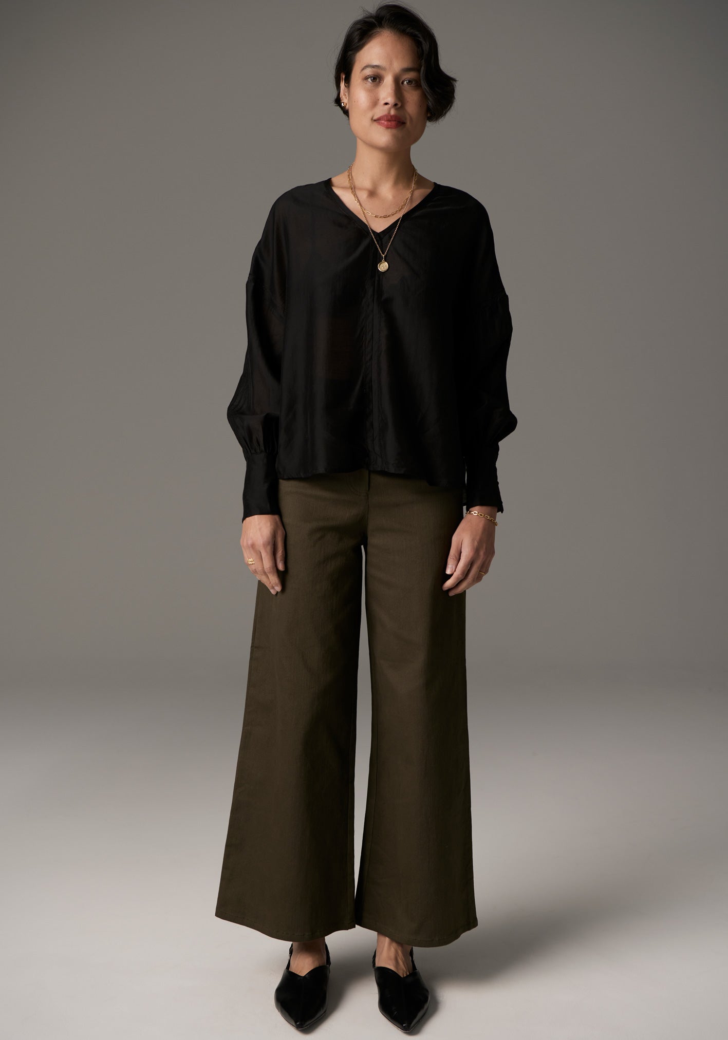 -Full length sleeves with deep cuffs - three covered button closure.