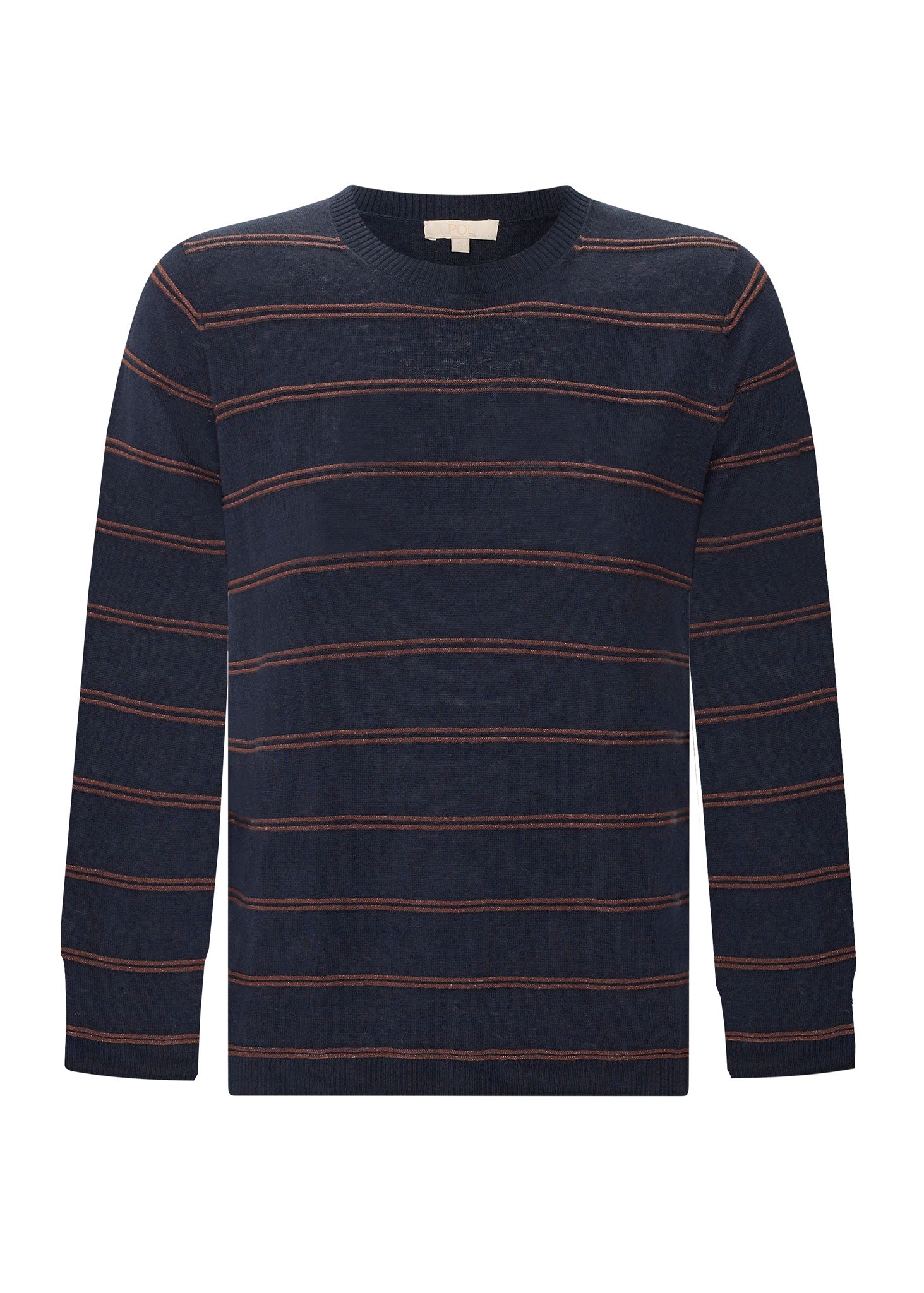 Our bestselling knit tee is now available in a long sleeve version! Featuring a round neckline and a classic fit, the Sable Striped Long Sleeve Knit features tiny lurex double stripes to bring a little sparkle into your everyday.