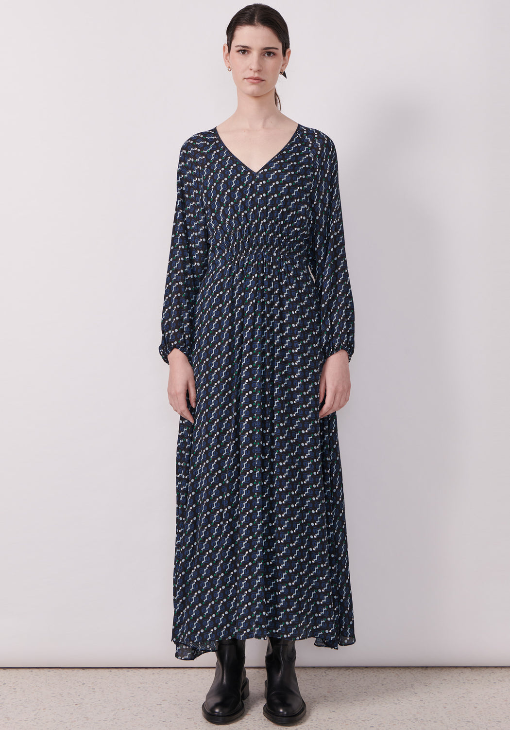 With ruched waist and a soft flowy skirt, the Saddle Garden Dress is a chic piece in an easy to wear silhouette.