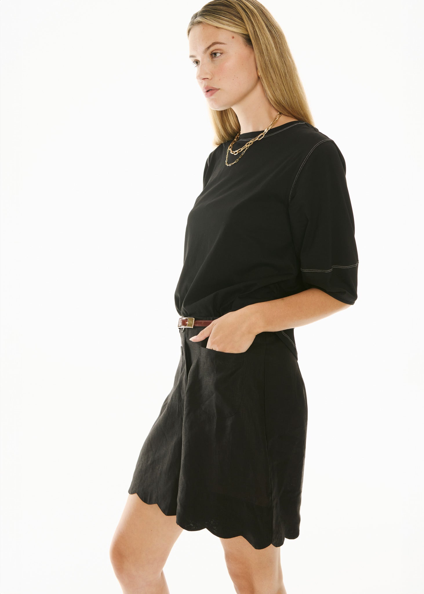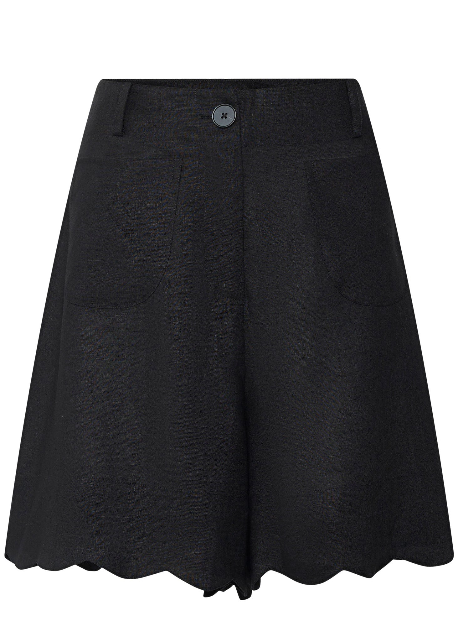 The Safria Scallop Short blends ease and femininity with its flared shape and scalloped hem, available in Black and Ivory. Pair with the matching Safria Top for a coordinated look.
