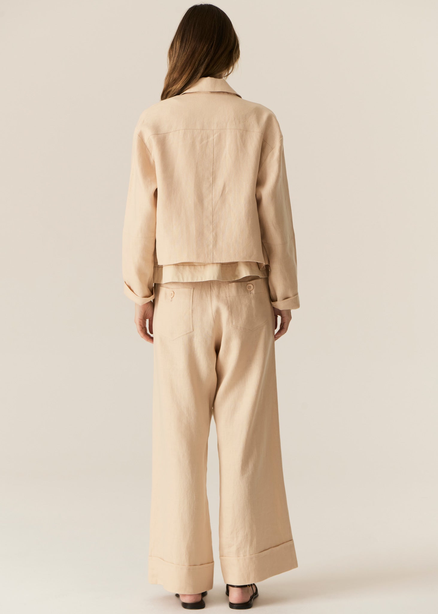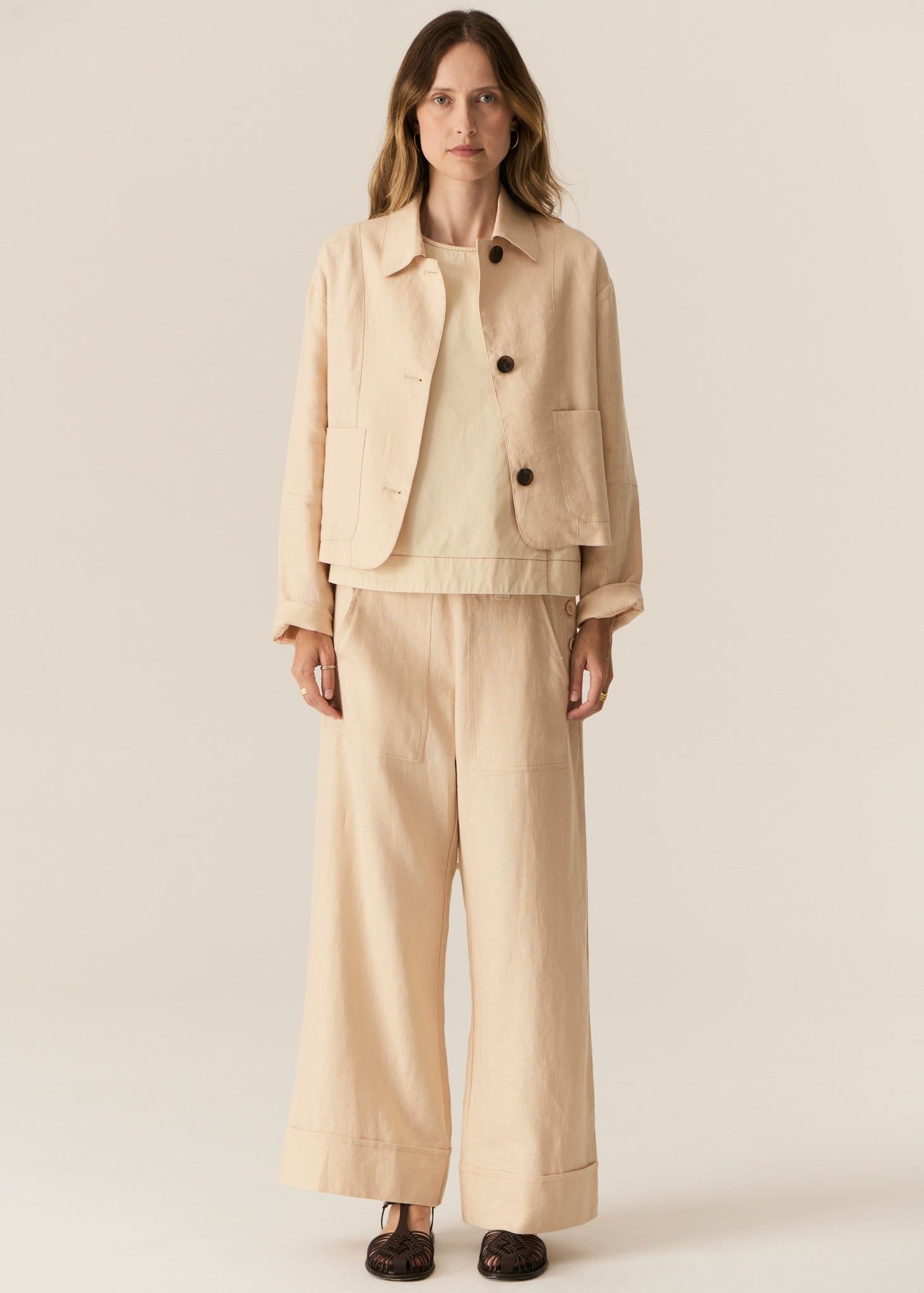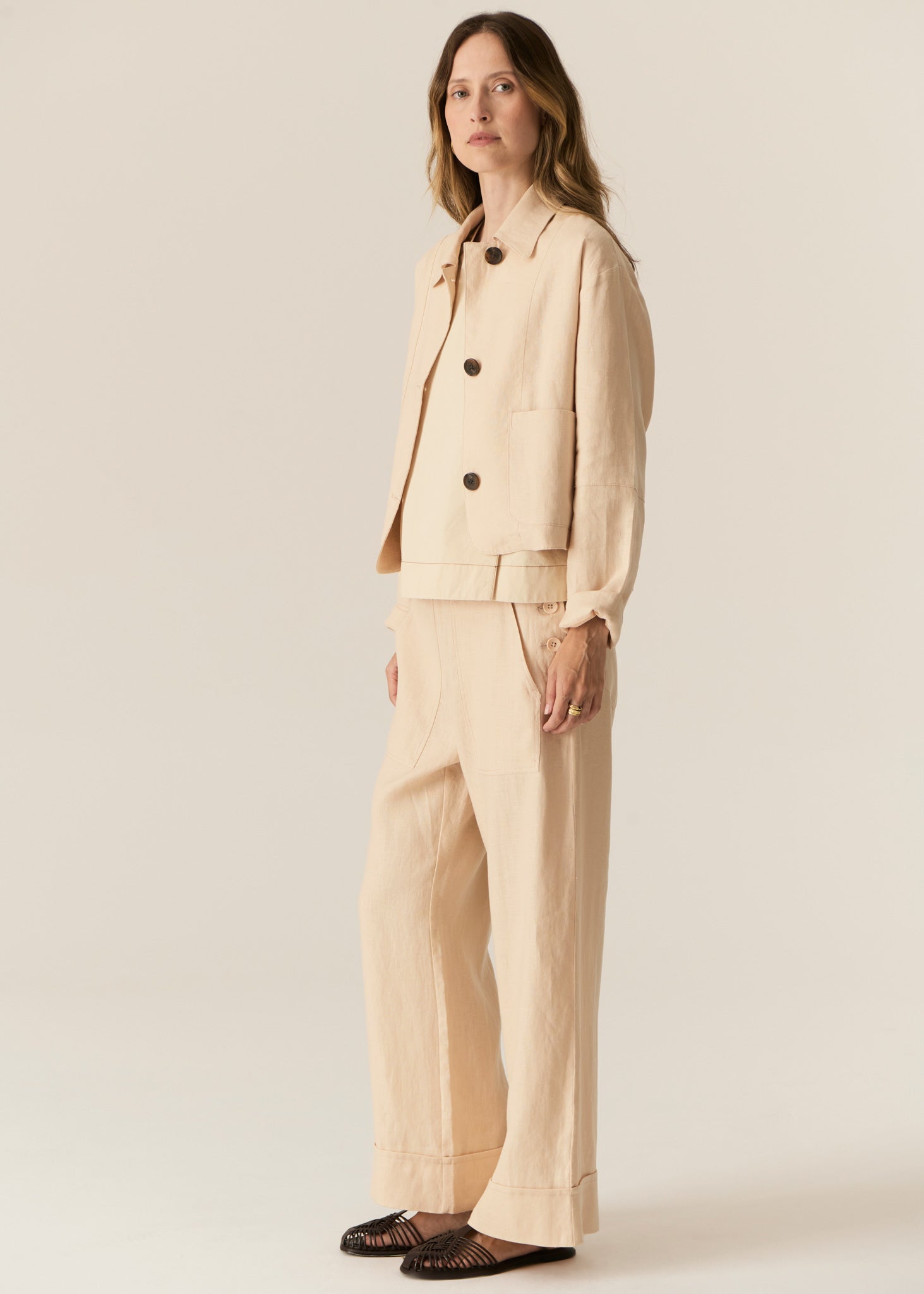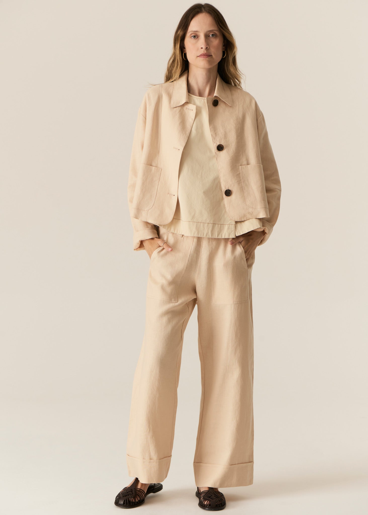 Featuring a boxy cut in pure linen, the Saga Jacket is the perfect layering piece for Spring and Summer.