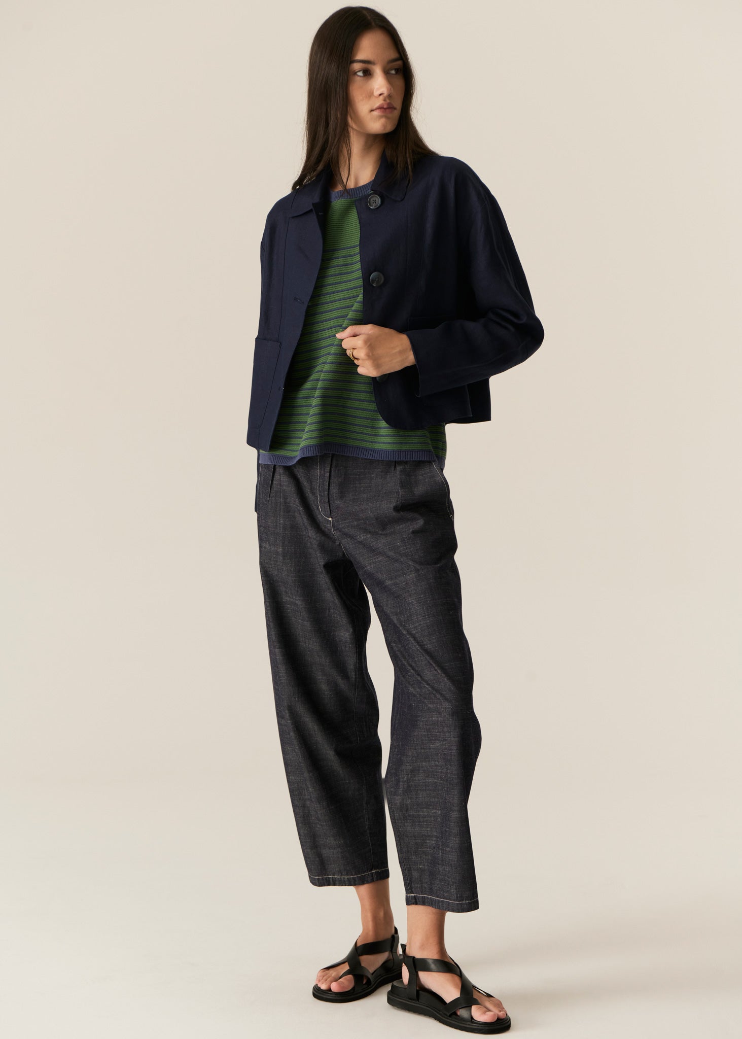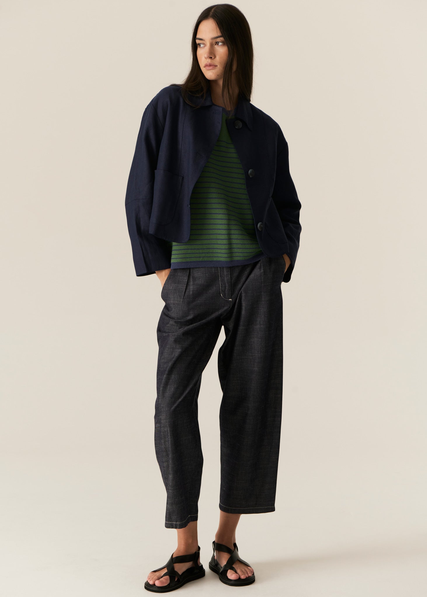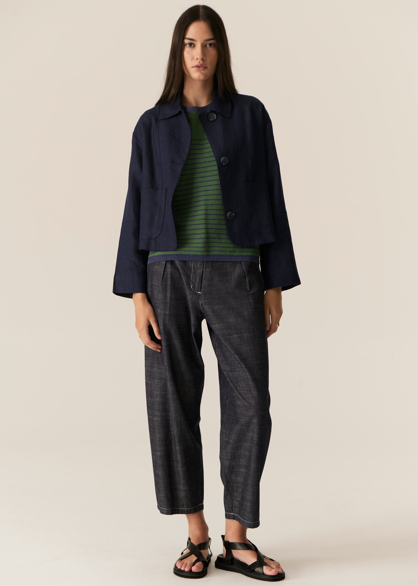 Featuring a boxy cut in pure linen, the Saga Jacket is the perfect layering piece for Spring and Summer.