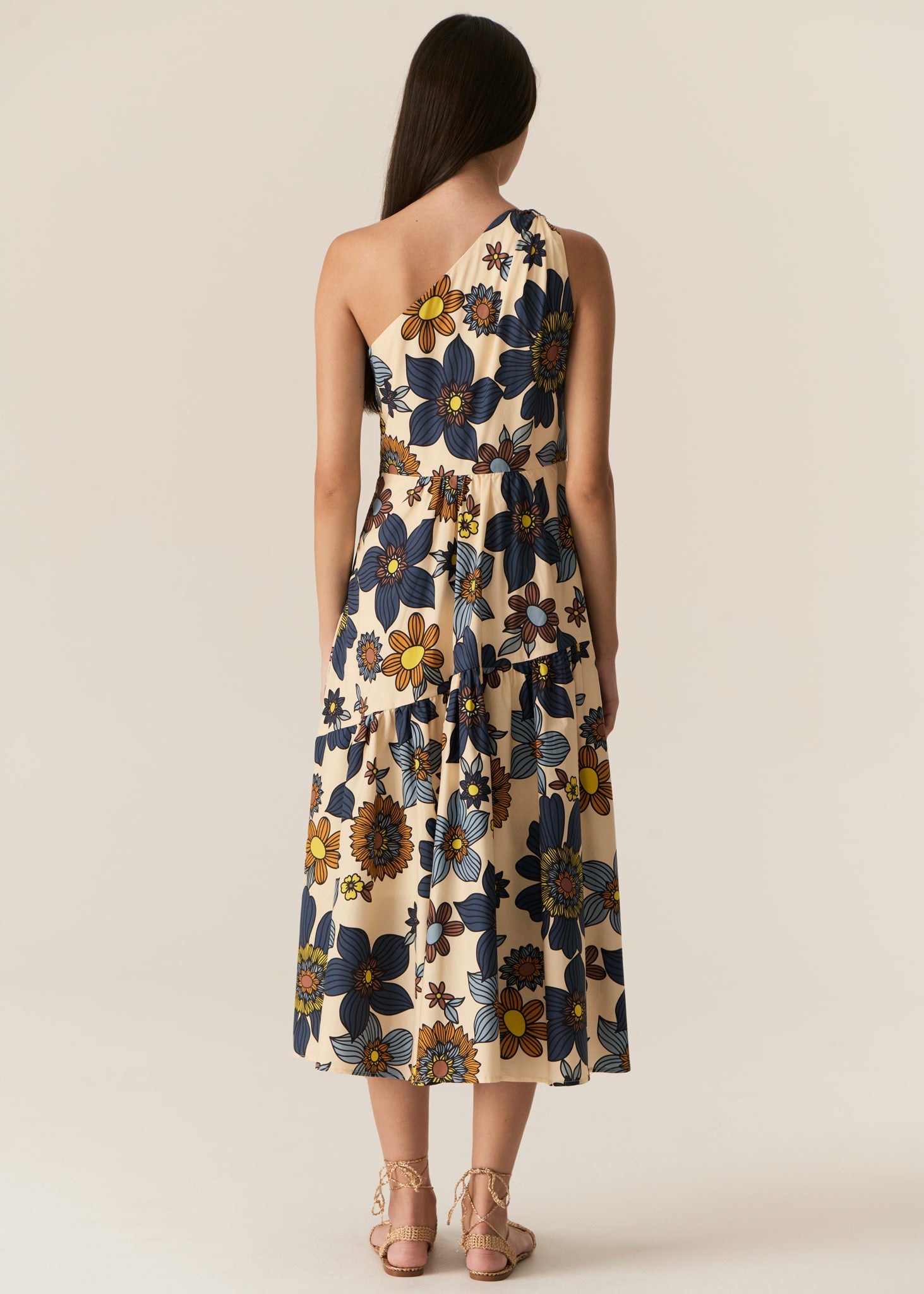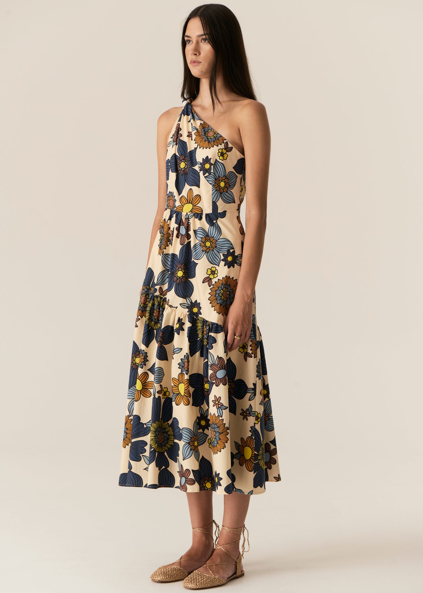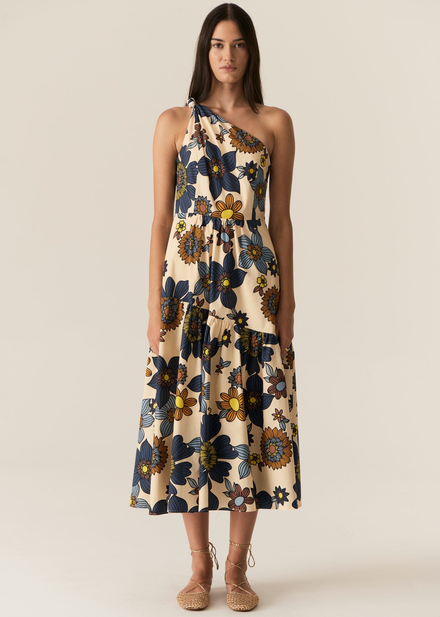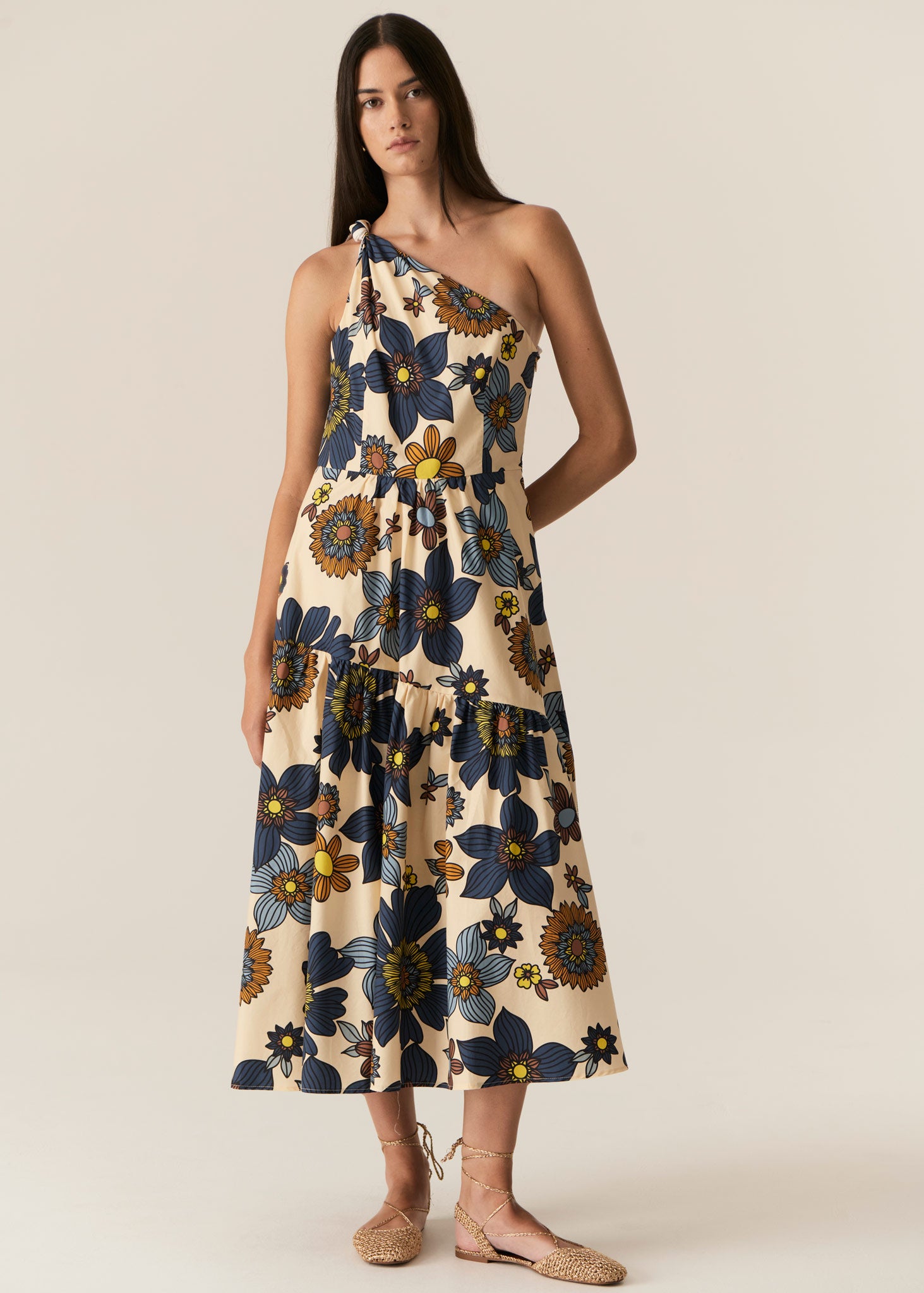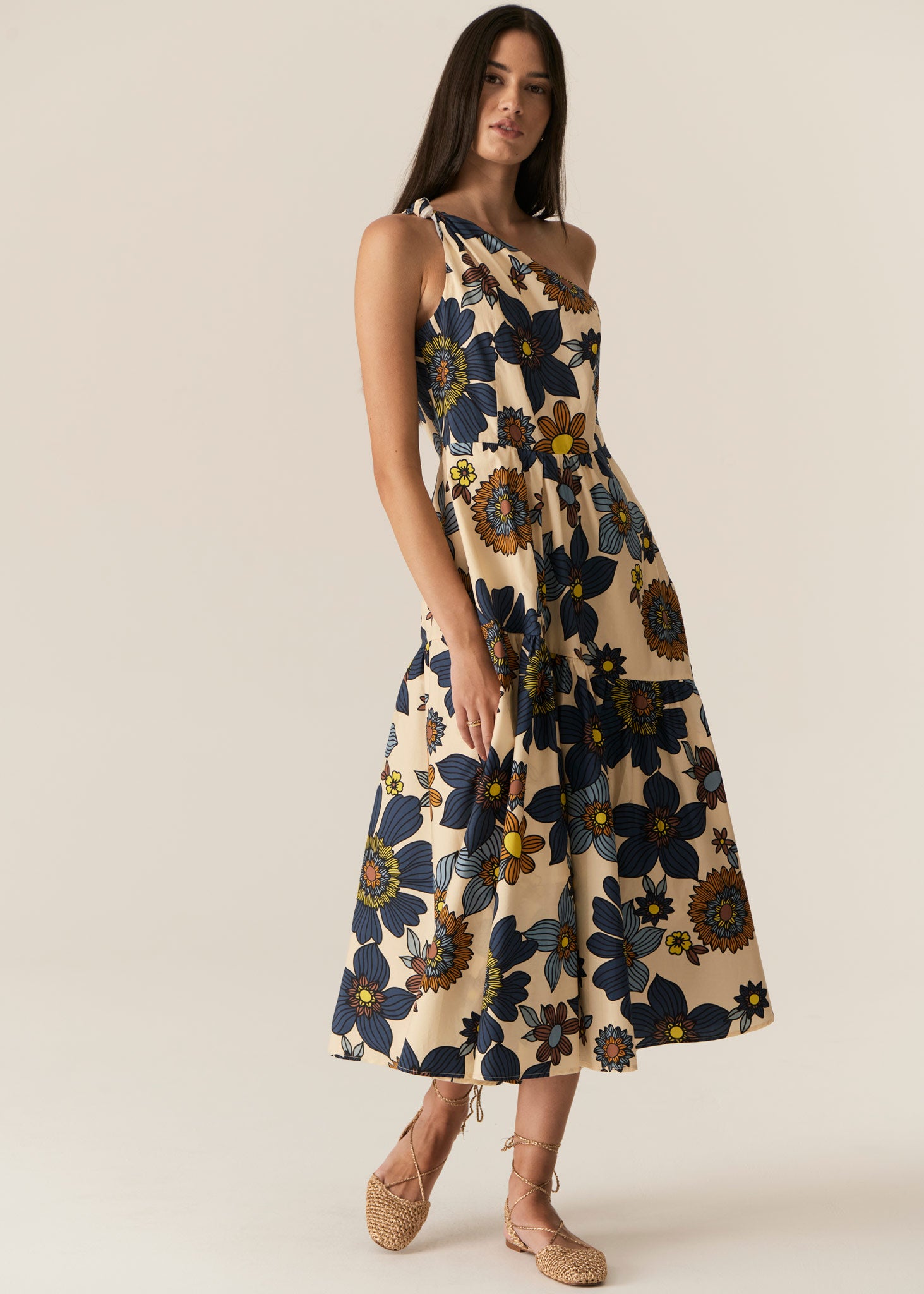Featuring an oversized exclusive floral print, the Thora One Shoulder Dress makes a statement in crisp cotton.